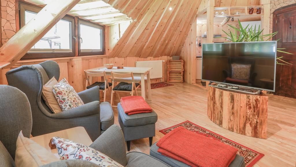 Udover glamping har du også lokaler til rådighed her - dobbeltværelse på loftet med en luksusseng til en let og fredelig søvn, dobbeltværelse med balkon, som er en ægte kærlighedsrede med udsigt til have og skov - og lejligheder: suite Grøn med et soveværelse, en terrasse og udsigt over skoven; Premium suite med et soveværelse og stue og pa Superior suite i størrelsen 110 kvadratmeter, som kombinerer luksus og behagelig komfort.