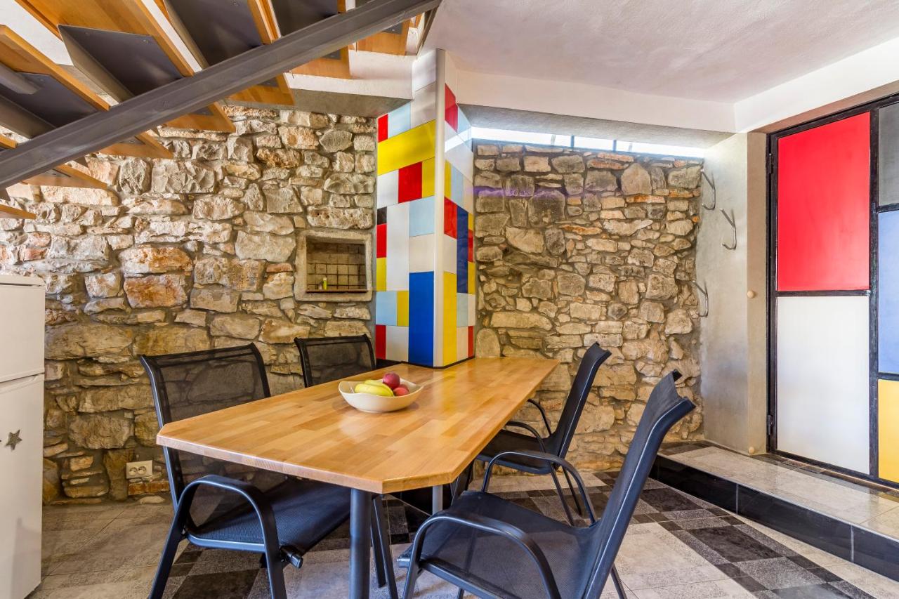 I Vodnjan er der et meget interessant hus, hvis møbler er inspireret af den berømte maler Piet Mondrian. Hans værker er domineret af grundfarvernes spil, rød, sort, blå og gul, hvilket også afspejles i boligen opkaldt efter den berømte hollænder. Straks efter ankomsten vil det blive klart for dig, at du ikke vil kunne undgå denne farvepalet selv på toilettet.
