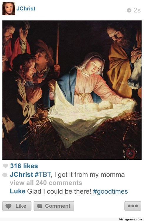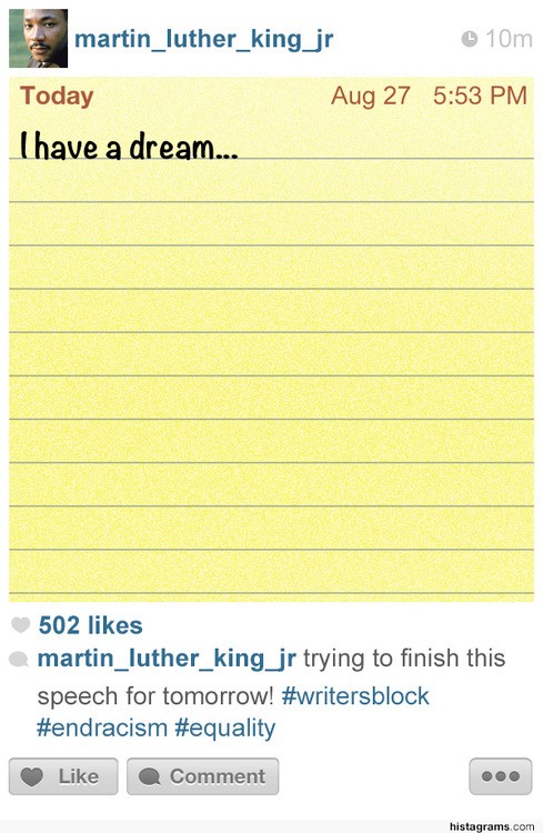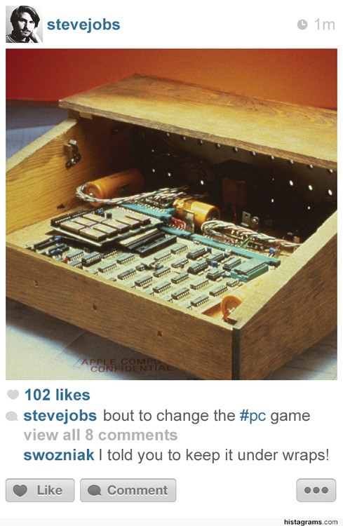 En af de mest populære smartphone apps, Instagram, er stjernen i dagens underholdningsgalleri. Forfatterne af kollektionen, designerne Gusto NYC og Gavin Alaoen, udstyrede vigtige milepæle fra vores historie med "hashtags" og kommentarer. Kan du forestille dig astronaut Armstrong eller Jesus med en iPhone i hånden?