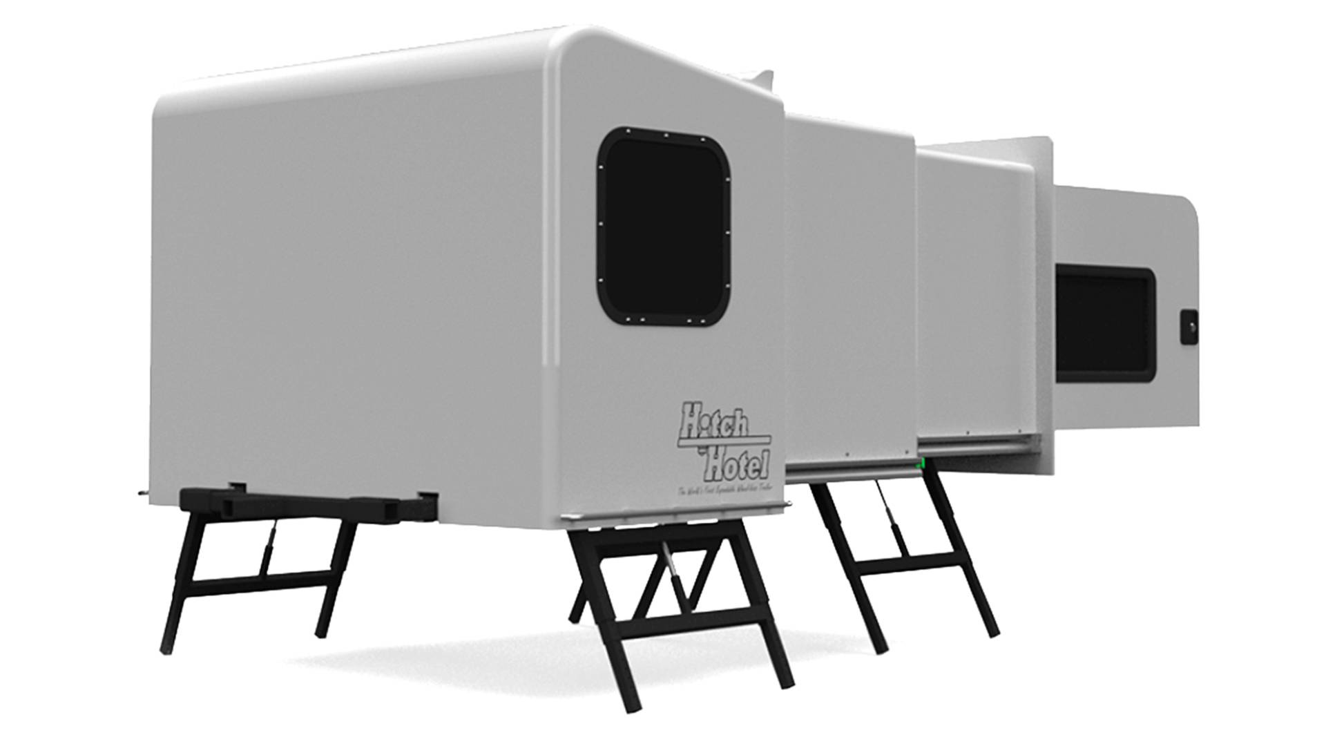 Hitch Hotel er verdens første udvidelige campingvogn uden hjul. Det betyder, at du ikke skal 'slæbe' den bag dig og dermed ikke være afhængig af alle de ekstra vej- og færdselsregler, der vedrører bugsering af en campingvogn. Under turen, når traileren er lukket, kan Hitch Hotel bruges til lastopbevaring, som vi har til rådighed for 1,7 kubikmeter volumen, som er nok til tre hjul. Konstruktionen er vandtæt, så du behøver aldrig at bekymre dig om, hvorvidt dine ting kommer tørt frem til deres destination.