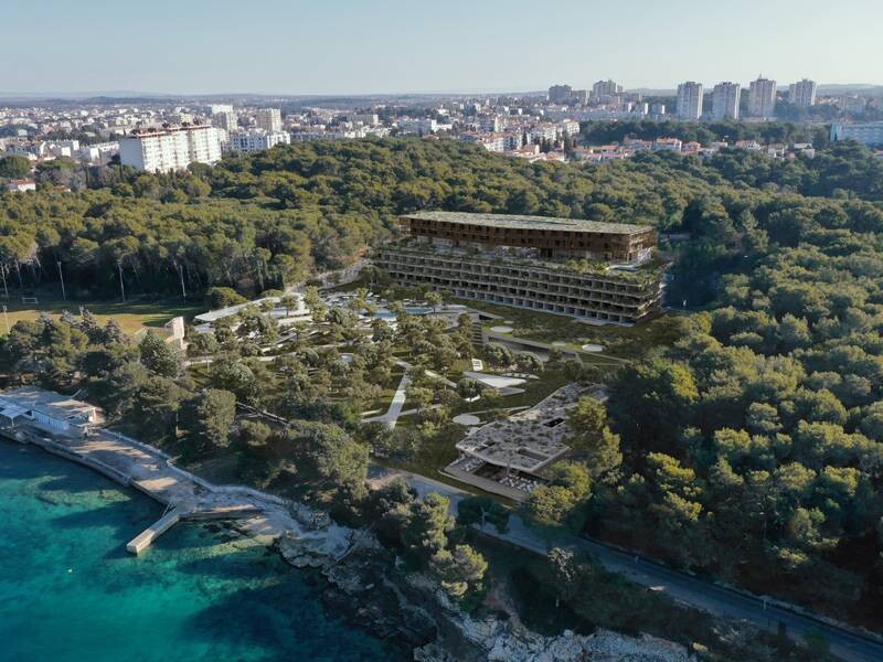 Designet af hotellet er signeret af et af de mest berømte kroatiske hoteller af arkitektkontorer 3LHD, som også er kendt af mange for skabelsen af Grand Park Hotel i Rovinj. Det nye hotel i Pula bliver også et sandt arkitektonisk vidunder. Det femstjernede hotel vil være i perfekt harmoni med omgivelserne, og kommer til at ligge lige ud til havkysten. Hotellets beliggenhed er beliggende på stedet for et tidligere stenbrud øst for bybadet. Selvom beliggenheden giver en stor udfordring, har arkitekterne fundet en interessant løsning, hvor den nye bygning fuldstændig fordyber sig i det omkringliggende grønne område og genskaber hele rummets designværdi. Med selve visionen om hotellet ønsker ejerne og skaberne at placere Pula blandt de mest besøgte luksusdestinationer på den kroatiske kyst.