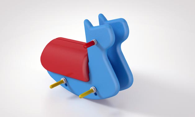 I begyndelsen er der en vugge. Så er der en gyngehest. Og så er der en klapvogn med hjul. Fra vugge til leg.