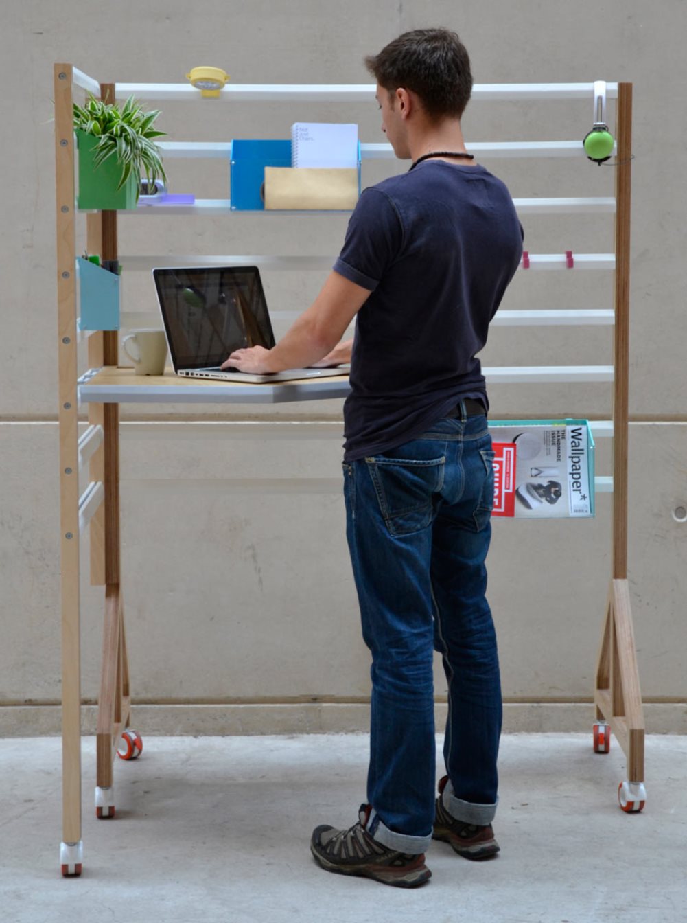 David Manning fra "Ikke bare stole" har skabt et arbejdsområdedesign, der følger fremtidens trends, hvor vi vil bruge vores kontor på forskellige måder, og designet til at fremme dynamisk arbejde. Produktets unikke design sparer dig meget plads, da det nemt kan foldes sammen, når det ikke er i brug, samtidig med at det giver dig god opbevaringsplads.