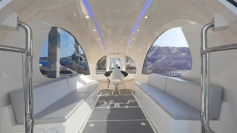 Interiøret er fuldt tilpasseligSå vi kan vælge pladser til op til 12 personer eller andre elementer, såsom et køkken eller badeværelse. Vi kan endda forestille os en fuldt udstyret spisestue og nyde romantiske middage på bølgerne. Vinduerne er belagt med et særligt beskyttende stof, der forhindrer solens stråler i at trænge ind i det indre og blændede passagerer. Jetkapslen har bestemt romantisk potentiale, men vi er ret sikre på, at den aldrig vil erstatte de venetianske gondoler.