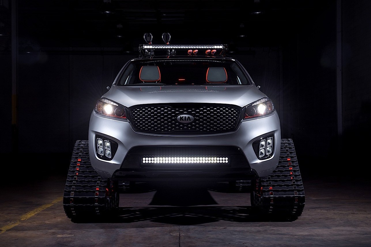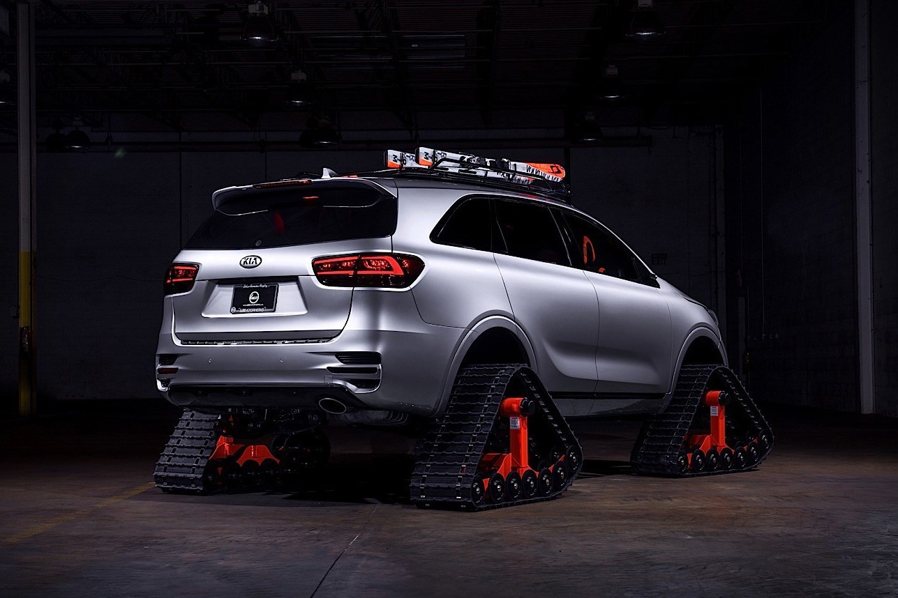 Ligesom Nissan, der introducerede Rogue Warrior bælte-SUV'en i begyndelsen af året, har Kia afmonteret sin Sorento og sat spor på den i stedet for dæk. Kia forberedte Sorento Ski Gondola-konceptkøretøjet i samarbejde med LUX Motorwerks bilservice og viste det på SEMA 2016-biludstillingen.