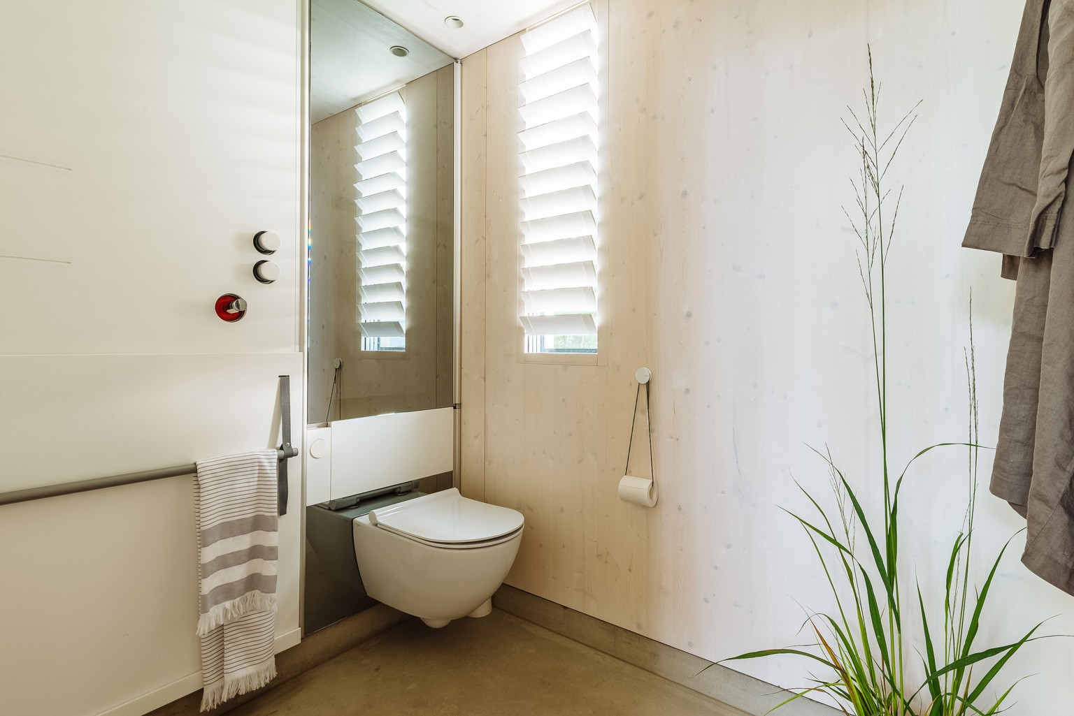 Hišo krasi betonska zunanjost, ki je izjemno preprosta za vzdrževanje, saj razen občasnega pranja z visokotlačnim čistilcem ne potrebuje vzdrževanja. Notranjost pa je zaradi prijaznosti bivanja in stika z naravo v naravnem lesu. Na strehi so seveda solceller, tako da je lahko hiša celo deloma neodvisna od omrežja.