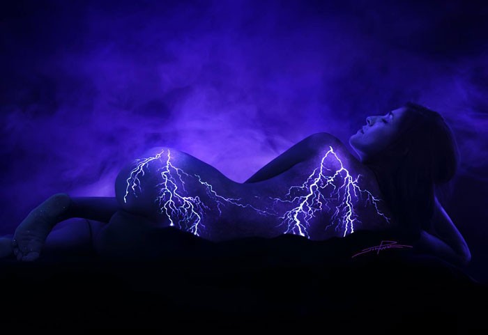 Fordi John Poppleton kommer fra fotografering, han ville have sin billeder af nøgne kroppe De ser så realistiske ud som muligt. Han skabte dem i et mørkt studie, hvor han UV-lys påført huden UV-karosserimalingHan siger, at det fra kunstnerens perspektiv er en ekstremt surrealistisk og endda spirituel oplevelse, og efter at have set hans værker fra serien Kropsbilleder, hvor han valgte kroppen som sit lærred, tror vi, du vil nikke til hans mening.