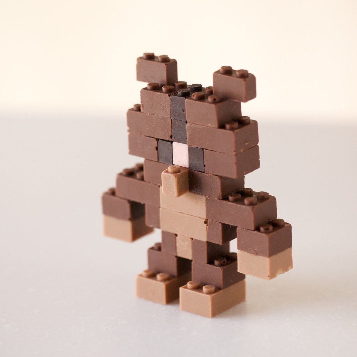 Chokolade Lego-klodser er skabt på samme måde ligesom de rigtige, bare at massen tydeligvis er lavet på en anden måde opskriftChokoladen hældes i Lego-form eller model, og når den køler af og hærder der, har disse stykker ikke kun en funktion søde lastermen også de ægte legetøjsom kan være blandes umærkeligt blandt plastiklegoklodser. Selvom chokoladestykker langt fra er vedvarende som plastik, men det betyder ikke, at du skal være forsigtig, når du spiller fantasi trim vingerne. Det er nok ikke en god idé at rulle dem for længe i hænderne, da de begynder at at smelteOg hvis du løber tør for ideer eller entusiasme, mens du sætter det sammen, så bare forbruge en slags terning, og sukkeret i chokoladen vil udløse udskillelsen af hormonet insulin, hvilket vil stimulere produktionen af serotonin i hjernen - også kendt som lykkehormon– og du vil være fuld af entusiasme igen.
