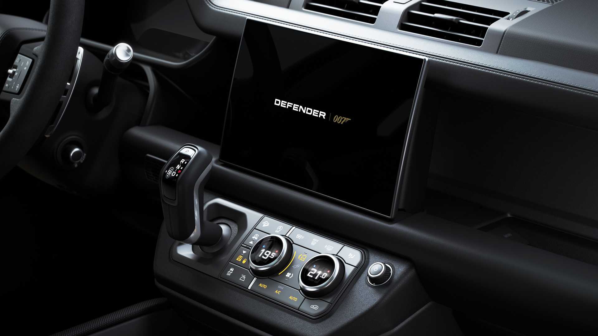 Land Rover Defender V8 vil dukke op på det store lærred i den seneste James Bond-film. Desværre vil Land Rover Defender V8 Bond Edition ikke være tilgængelig med ``gadgets'' såsom forskellige skydevåben eller ``skubbare'' sæder. Ikke desto mindre vil han være speciel og værdig selv den største filmskurk. Bond-udgaven er fuldt påklædt sort farve, med sort 22 tommer dem fælge og specielle markeringer 007. Det kan også ses i infotainmentsystemets velkomstbesked og de lys, der lyser, når dørene åbnes.