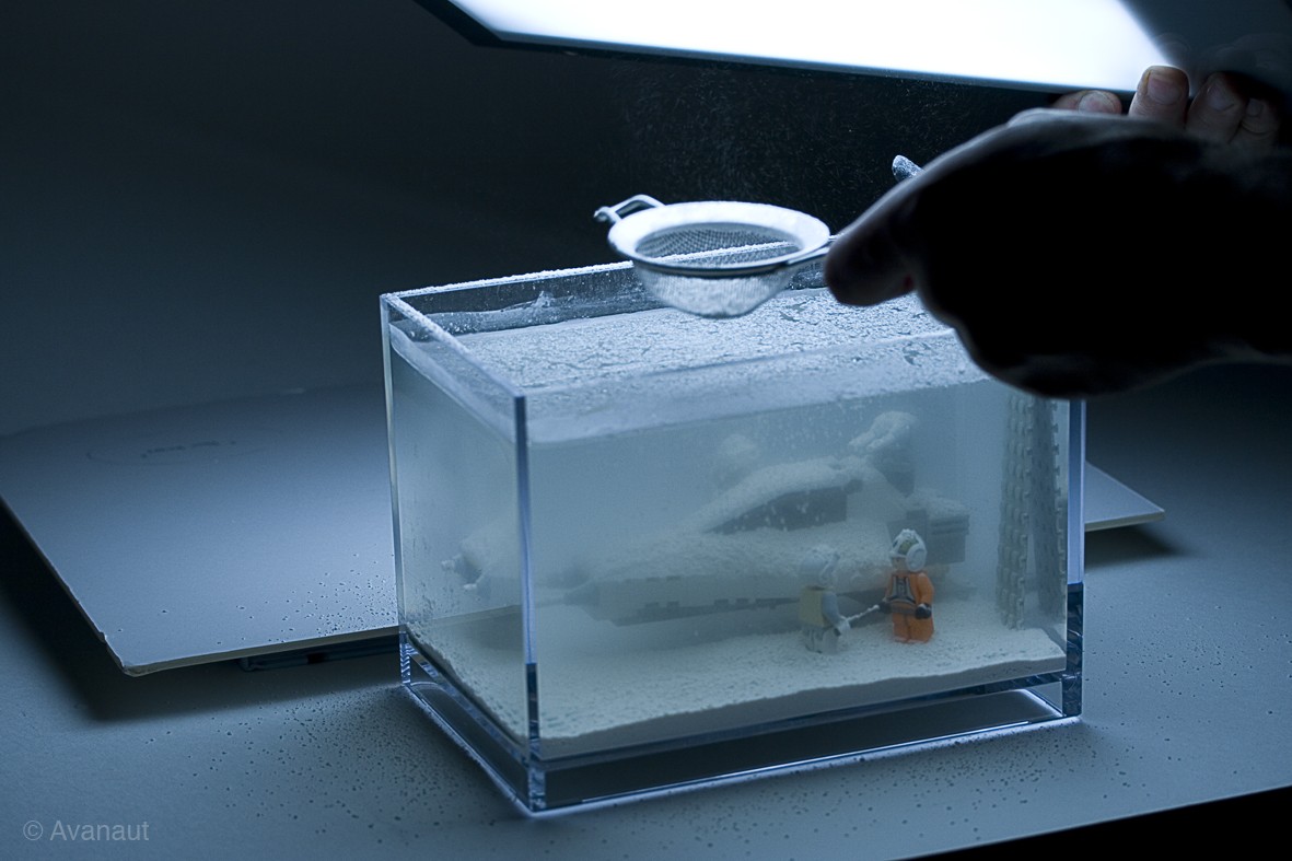 Ker je Vesa zaljubljen v zimo in sneg, se je odločil, da bo v takem okolju posnel tudi svoje figurice. Prizadeval si je ustvariti kar najbolj prepričljivo okolje in atmosfero, predvsem pa je iskal popoln nadomestek snega za mini prizore bitke na planetu Hoth. Preizkusil je več različnih materialov, med drugim tudi omet, sladkor v prahu in moko, toda, kot pravi, »pecilni prašek naredi popoln sneg za lego svet« in dodaja, da je želel ustvarjati iz elementov, ki jih vsi dobro poznamo. Prav zato Lehtimäkise navadno ne poustvari prizorov iz znanih filmov, temveč ustvari nekakšne lažne izbrisane scene, nekaj, kar bi se pravzaprav lahko zgodilo. Obenem zelo rad ustvarja, lahko bi rekli tudi režira, svoja fikcijska ozadja in sestavljanje delcev prepušča domišljiji, njegova umetnina pa s tem dobi še dodatno vrednost – edinstvenost.