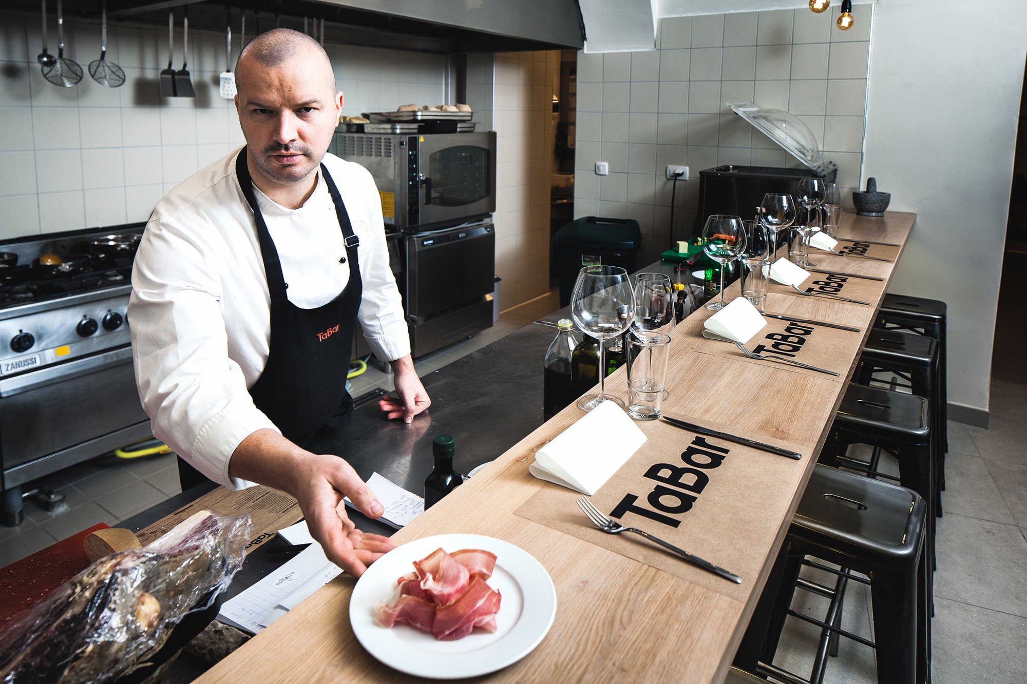Tilpasset byens puls og globale trends, samt en anderledes og afslappet måde at socialisere på end på en klassisk restaurant, tog de konceptet som eksempel Spanske tapas og designet med hjemmelavede råvarer fra lokale producenter. Denne bar er dermed blevet et nyt samlingssted med god stemning, hvor de kommer i første række friske, lokale råvarer og fremragende vine, åbent køkken og giver os mulighed for direkte at opleve smagens verden under vejledning af mesteren kok Peter Patajac, der gik i gang med sin egen måde at lave mad på. Barens tilbud er sæsonbestemt tapas men de tilbyder fire mere husets vine og omkring tredive andre vine. Udover den almindelige menu tilbyder de frokoster, og i februar starter de med Søndags dem brunchjeg. Prosciutto, hytteost, paté, ribben og andre delikatesser, friske grøntsager, oste og lækre desserter vil bestemt ikke efterlade os ligeglade og sultne.