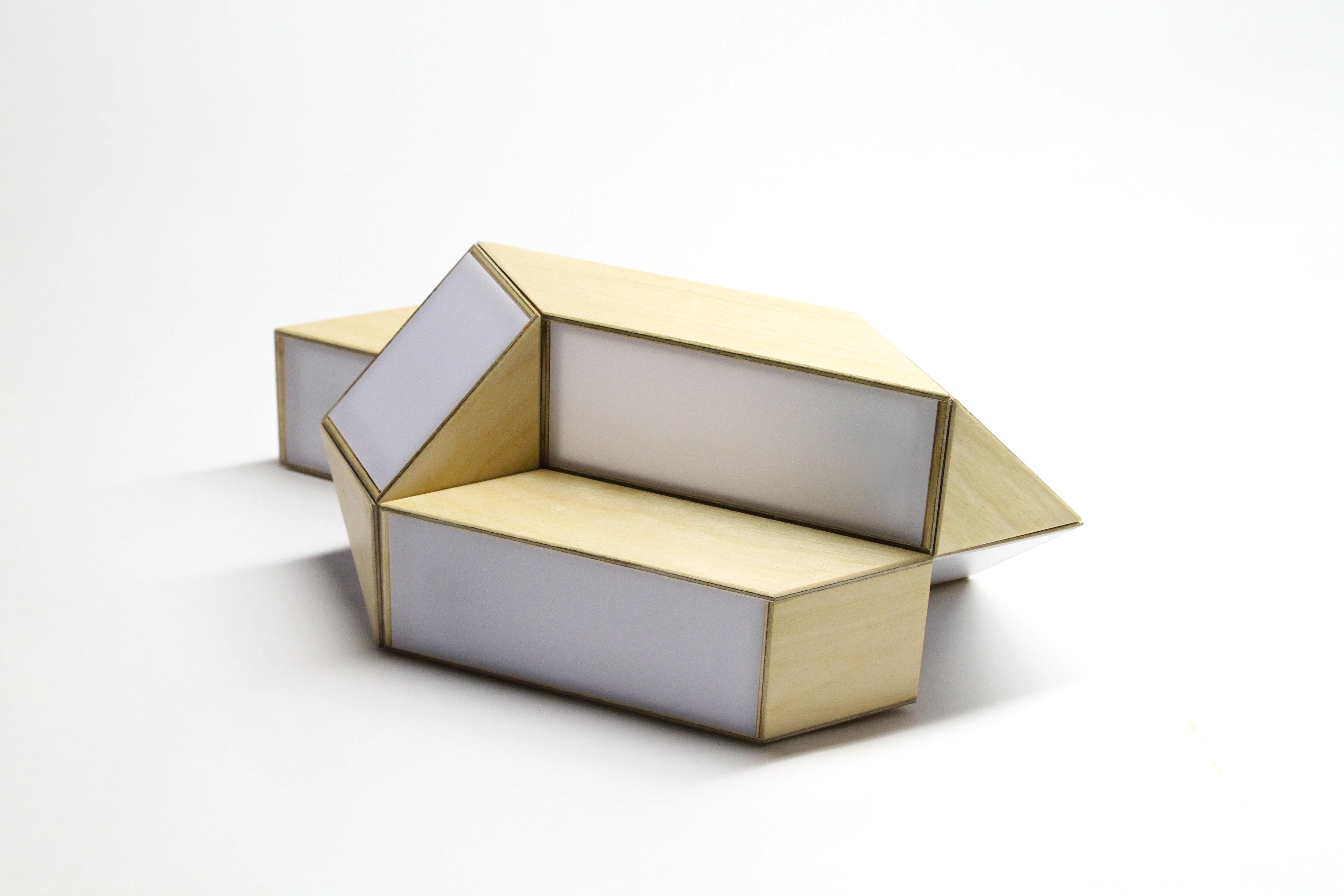 Lampen består af syv elementer, der kan drejes 360 grader og skabe to- eller tredimensionelle former. Den innovative lampe er lavet af krydsfiner, LED'er og plexiglas, og takket være dens alsidighed er den velegnet til både offentlige og private områder og til alle aldersgrupper.