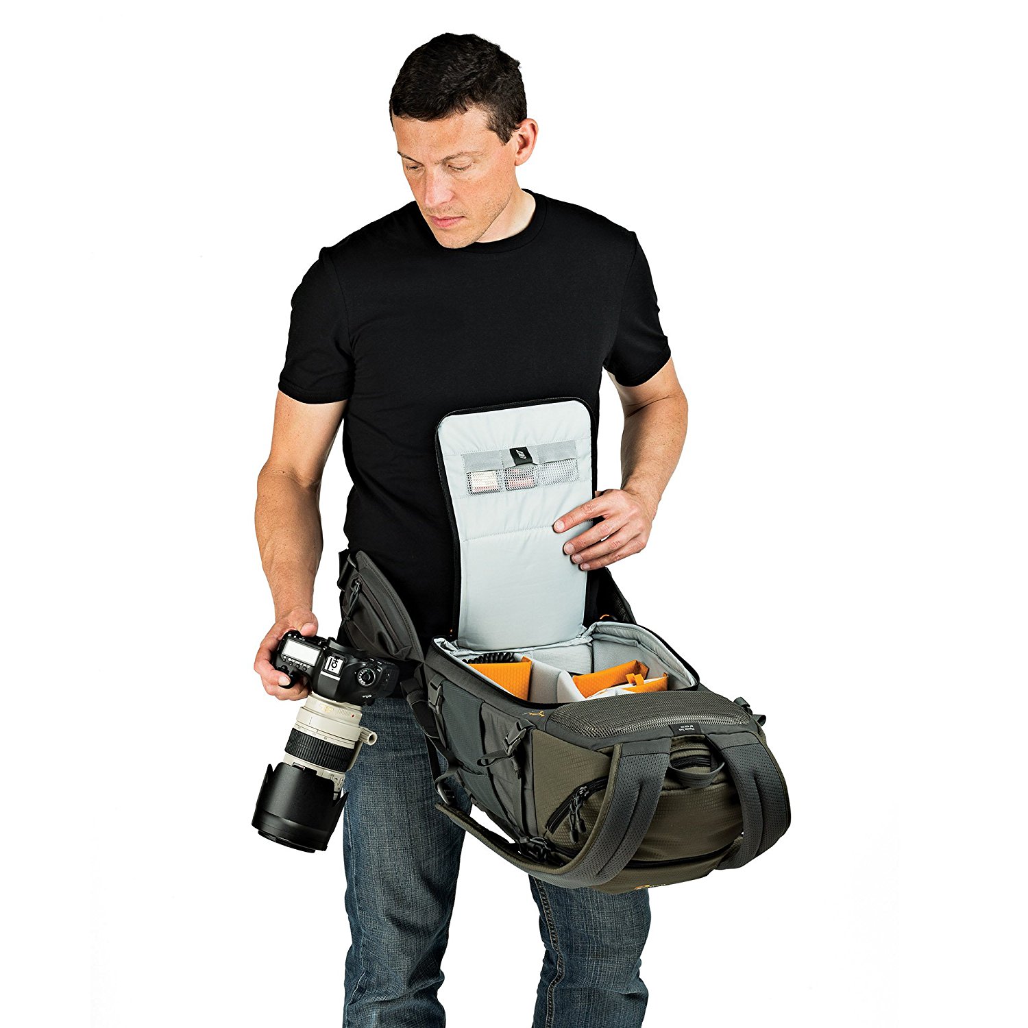 Do opreme lahko dostopate s strani in ne da bi sneli nahrbtnik, prav tako vam ni treba popolnoma odpirati predala. Za udobje poskrbijo blažilniki ActivZone. Če vas preseneti slabo vreme, ga zaščitite z vgrajeno dežno prevleko. Lowepro Flipside Trek tehta 1,69 kilograma, vaš pa je za 189 euro.