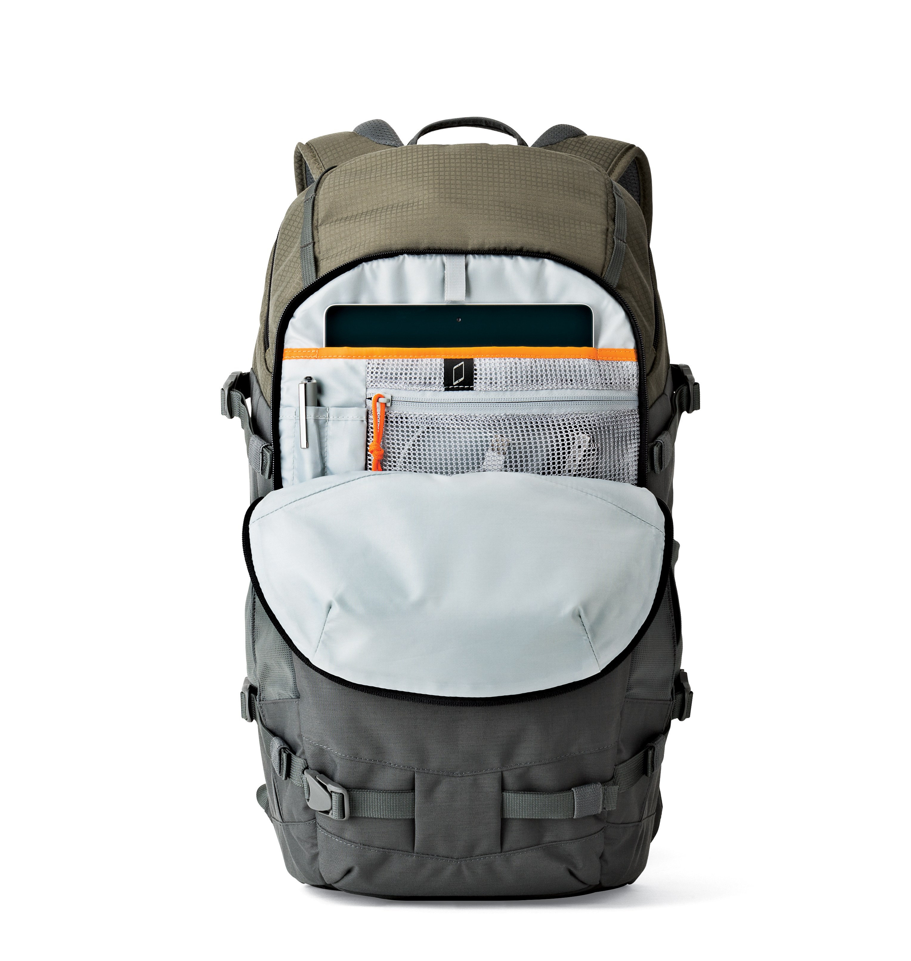 Poseben prostor je rezerviran za 10-palčno tablico in osebne predmete, prostora pa je tudi za kompakten stativ in monopod. Mesto se je našlo tudi za plastenko. Drugo opremo lahko zapnete za enega od mnogih pritrdilnih mest ali pospravite v enega od mrežastih stranskih žepov.