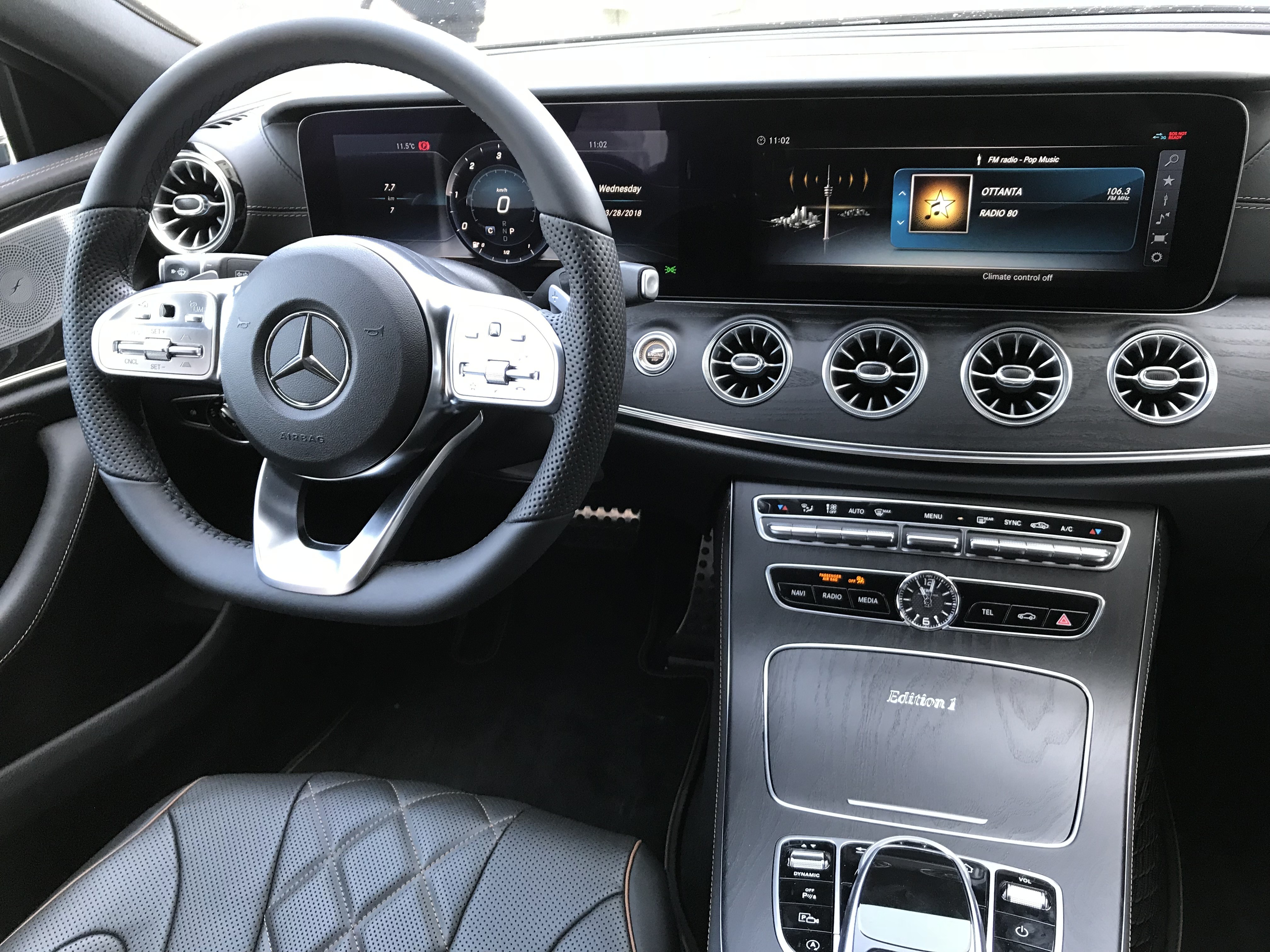 Notranjost je prefinjena, kot se za znamko Mercedes-Benz spodobi. Pri CLS-u lahko prvič opazujemo, kako se ambientalna svetloba okoli prezračevalnih odprtin spreminja iz rdeče v modro, glede na temperaturo, ki smo si jo nastavili na klimatski napravi. In tudi drugače nam lahko te iste reže svetijo v katerikoli izmed 64 barv ambientalne osvetlitve.