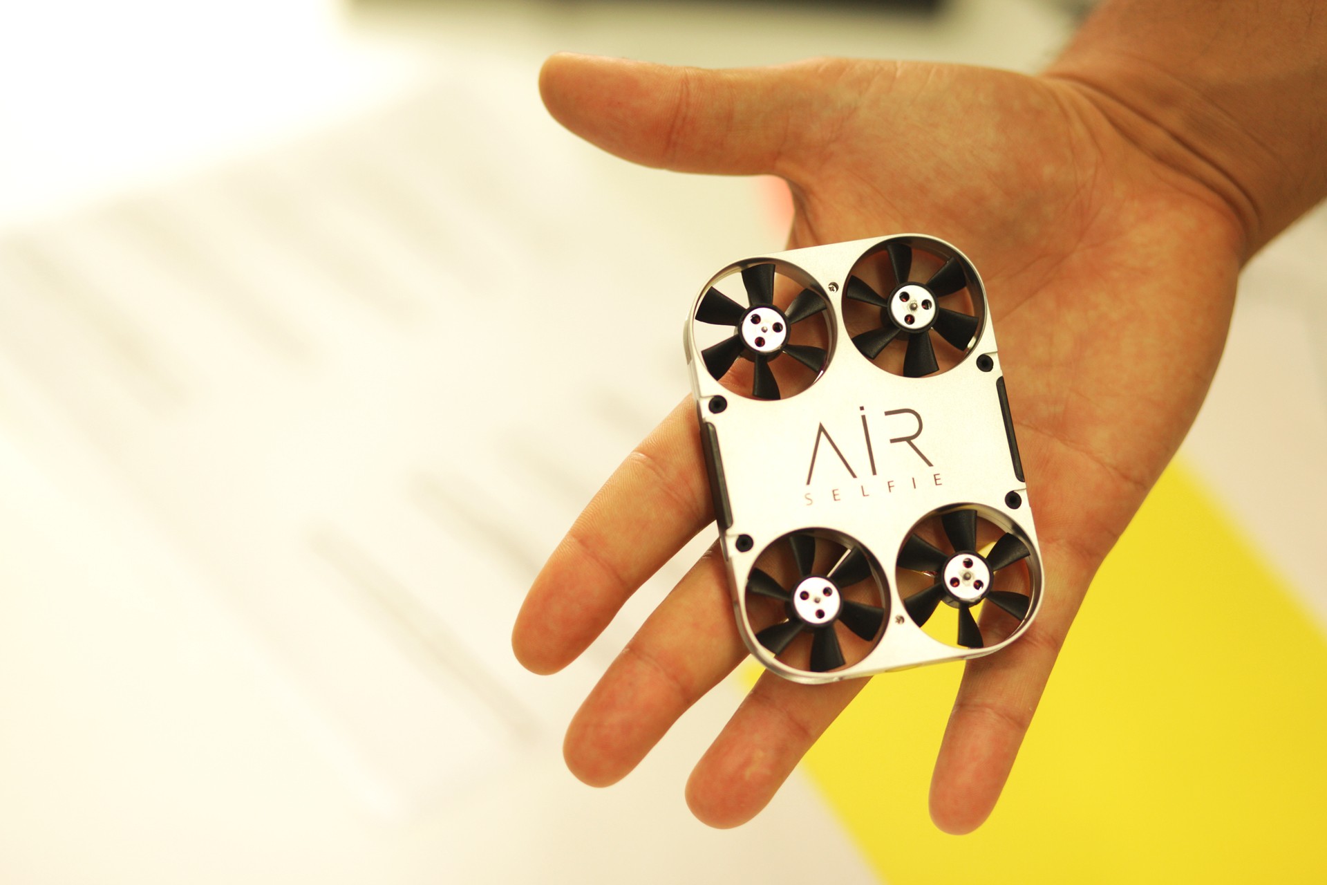 AirSelfie det er en drone, der ikke er større end et smartphonecover. Den kan flyve op til en højde 20 meter. Det har eget trådløst netværk (2,4 GHz), hvorigennem den forbindes til smartphonen og 5 MP kamera. En quadcopter administreres via en mobilapplikation, som er tilgængelig for både Android- og iOS-brugere. Det har de begge selvudløser funktion (op til 10 sekunder), og kameraet kan tage op til otte billeder i træk.