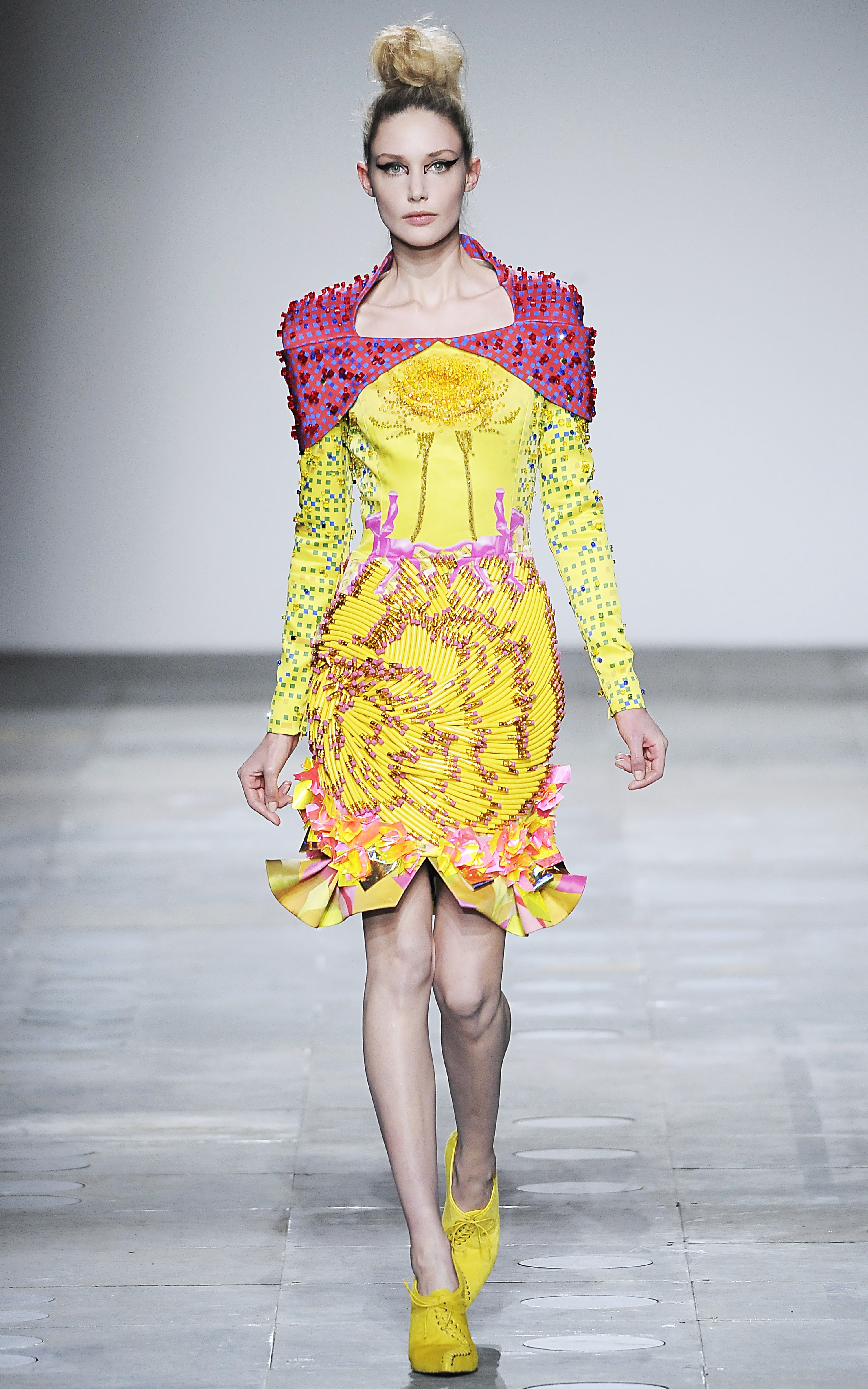 En græsk modedesigner, der bor og arbejder i London, navngav hun efterårs vinterkollektion 2012 Color is the Fruit of Life. Det er domineret af eventyrligt, fantasitøj med forvrængede snit, omhyggeligt sammensat med print, som tilsammen udgør en yderst rig og fortællende samling. Effekten af mønstre eller snit ville gå tabt uden hinanden, men sammen, præcist samlet, fungerer de fejlfrit. Billeder af en blyant, ske, bøjle, skak og skrivemaskine. I den nye kollektion fandt designeren skønhed i hverdagen og de genstande, der omgiver os, og ophøjede det almindelige til det ædle. Det opnåede hun også med den kamp, hun besluttede sig for for første gang. Hun forsøgte at matche alle elementerne. Hun delte samlingen op i syv dele, som indeholder tryk med billeder af genstande i en bestemt farve, blandt hvilke hun valgte hvid, blå, grøn, sand, gul, rød og sort. På landingsbanen lyser modellerne mættet med stærke nuancer. Mary Katrantzou hun er en mester i realiseringen af tilsyneladende simple koncepter, som først kommer bedst til live i komplekse former, når printene bestemmer tøjet. Denne gang dikterer mønstrene ikke kun farverne, men også kjolens form og stemningen i farvesekvensen. Med den nye kollektion løftede hun sin genkendelige æstetik til et nyt niveau. Hun samarbejdede med det prestigefyldte franske haute couture-hus, Lesage, og resultatet er håndlavede, unikke kreationer. Hendes kollektioner er konsekvente i hendes visionære teknikker, hvormed hun skaber en hymne til farver, almægtige, indflydelsesrige print og frem for alt de vildeste rækker af menneskelig fantasi. Det er en kalejdoskopisk vision af den moderne kvinde.
