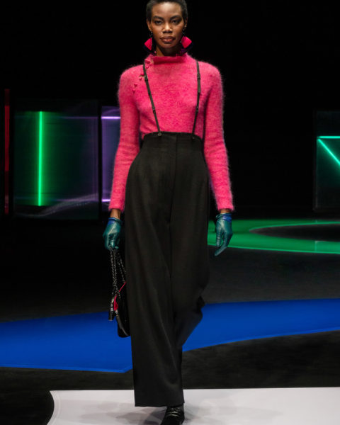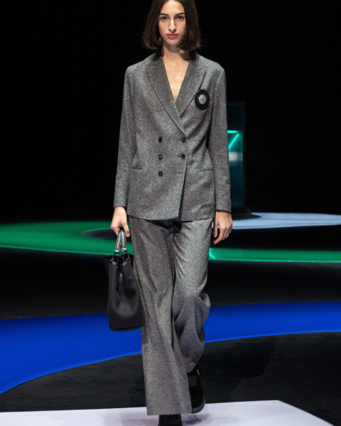 Modekollektion"I humør til pop", er ikke kun en fejring af Emporio Armanis 40-års jubilæum, men også en hyldest og en tilbagevenden til firserne. Det er tøj, der er en blanding af elegance og androgyni. Tøj med afslappede silhuetter, dekoreret med forskellige grafiske motiver, disco nuancer, strikdetaljer, klassiske jakker, skræddersyede jakkesæt.