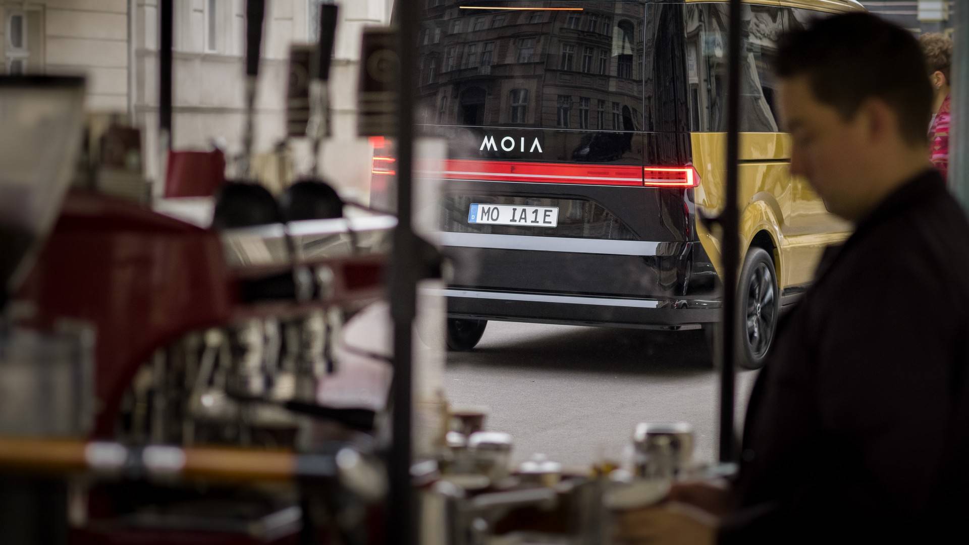 Moia er en Berlin-baseret mobilitetsstartup, der er 100% ejet af Volkswagen Group. De præsenterede deres vision om en fuldt elektrisk varevogn, der har plads nok til seks personer. Konceptet blev udviklet på blot ti måneders samarbejde med Volkswagen Erhvervskøretøjer.