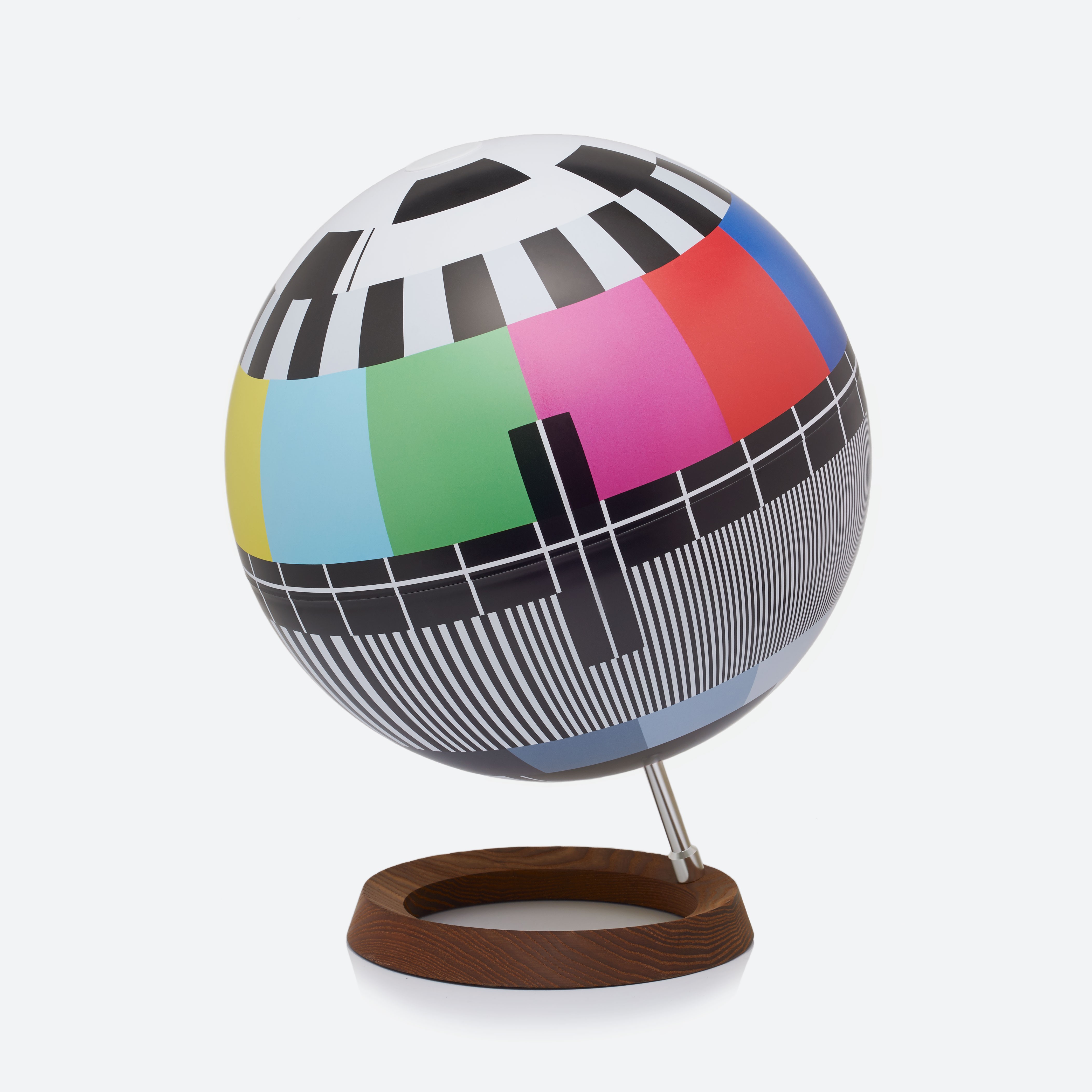 Kan du stadig huske testbillederne af tv-stationer på analoge fjernsyn, ved hjælp af hvilke vi kunne forbedre billedet? Du har sikkert billedet af vores nationale tv-testbillede indkodet i dit hoved. Selvom denne scene helt er forsvundet fra vores liv, vender den nu tilbage til scenen i form af Mono Lamp bordlampen, som efterligner formen af en bordglobe.