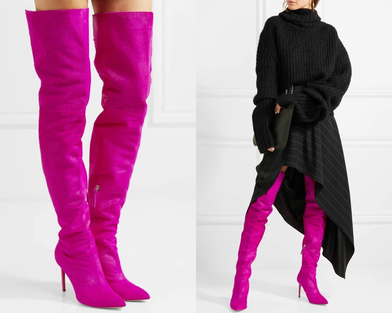 Seveda imajo čudovite primerke škornjev čez kolena tudi Zara in H&M, a mimo nekateri lepotcev, ki močno presegajo naše finančne zmožnosti, pač preprosto ne moremo.