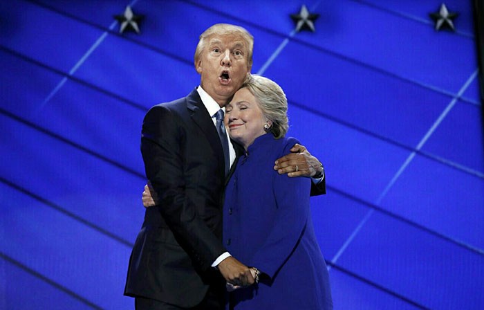 Efter at Barack Obama opfordrede folk til at støtte Hillary Clinton efter hans tale ved den demokratiske nationale konvent i Philadelphia og derefter gav hende et hjerteligt kram, reagerede online-pjattere øjeblikkeligt og ødelagde det perfekte øjeblik med en række glade fotomontager, der får dig til at grine højt. Mens Obama og Clinton omfavner, bryder en Photoshop-kamp ud.