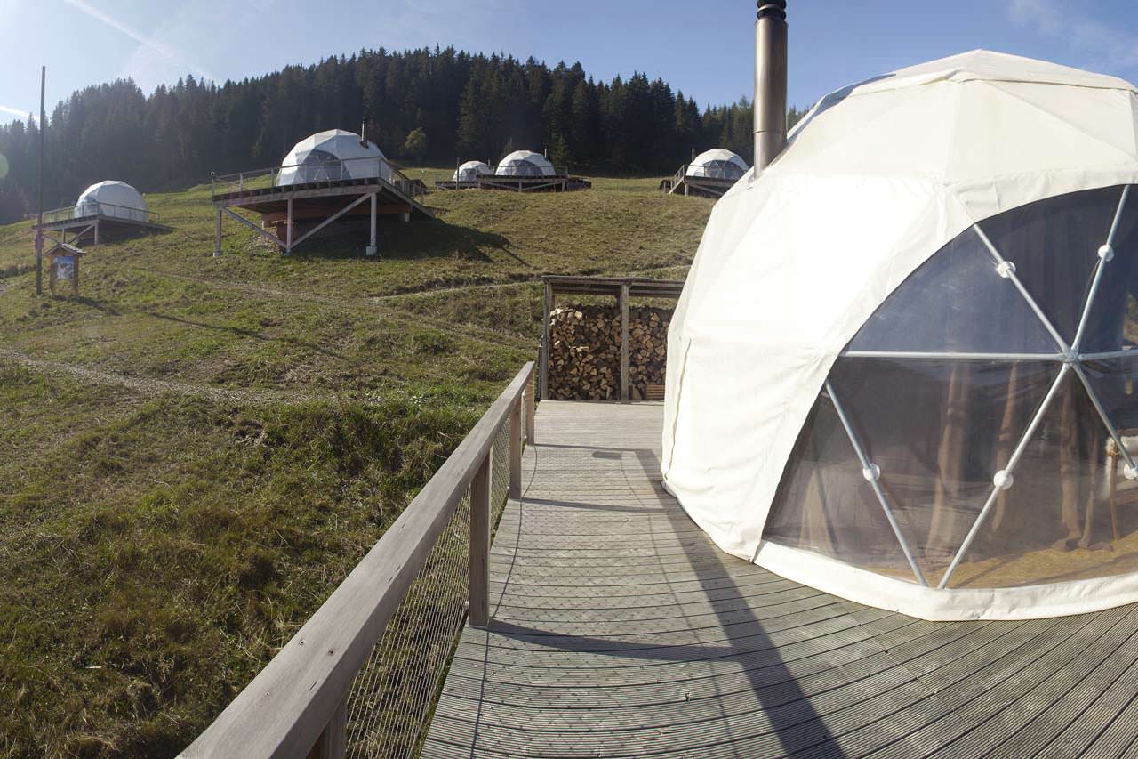I de schweiziske alpers omfavnelse strækker det højteknologiske øko-resort Whitepod sig på 1.700 meter med usædvanlige kuppelformede feriehuse, der skaber en unik oplevelse både vinter og sommer.