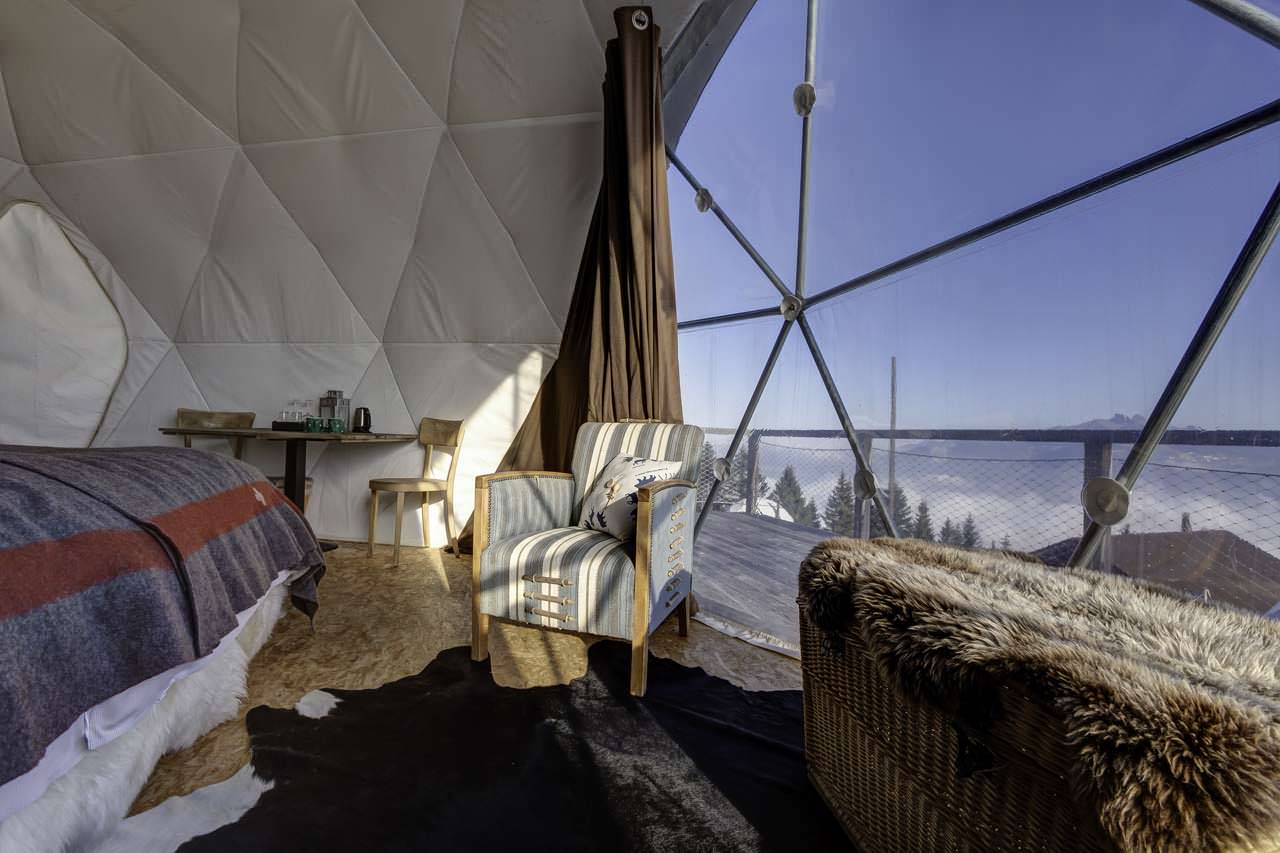 Pionerski koncept arhitekturno osupljivih “šotorov”, imenovanih “pods”, nameščenih na lesenih platformah, skriva tradicionalni interier, napredno izolacijo og sistem ogrevanja ter kopalnico s svojim vodnim virom. Skupino 15 hišic pozimi pokrivajo zaščitne ponjave, poleti pa zelena streha. Poleg sproščujočega pogleda na čudovite okoliške Alpe og Ženevsko jezero, resort nudi še 7 kilometrov zasebnih smučarskih stez, restavracijo, bar ter welness z japonsko kopel in finsko savno. Whitepod tako poskrbi za ravno pravšnjo mešanico pomirjajočega preživljanja v naravi in aktivnega počitnikovanja.