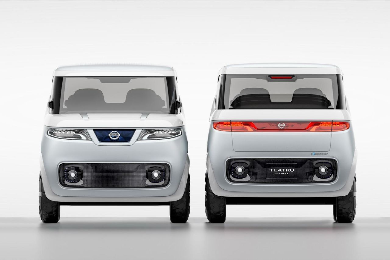 Nissan Teatro for Dayz er et køretøj, der ankom fra fremtiden. Stålhest – kan vi overhovedet tale om stål, eller er det mere flydende krystal hest? - er beregnet til den "delende" befolkning, der deler sit liv med verden på sociale netværk. Så det er ikke overraskende, at de er det touchskærme overalt, hvor du drejer dig. De kan findes på instrumentbrættet, døre, sæder... Det er lavet ud fra modellen Dayz, og med mange futuristiske godbidder, som vi må vente lidt endnu. Det er en firkantet Teatro økologisk farvet køretøj, hvormed Nissan sigter mod at dæmme op for faldet i lysten til biler blandt japanske unge.
