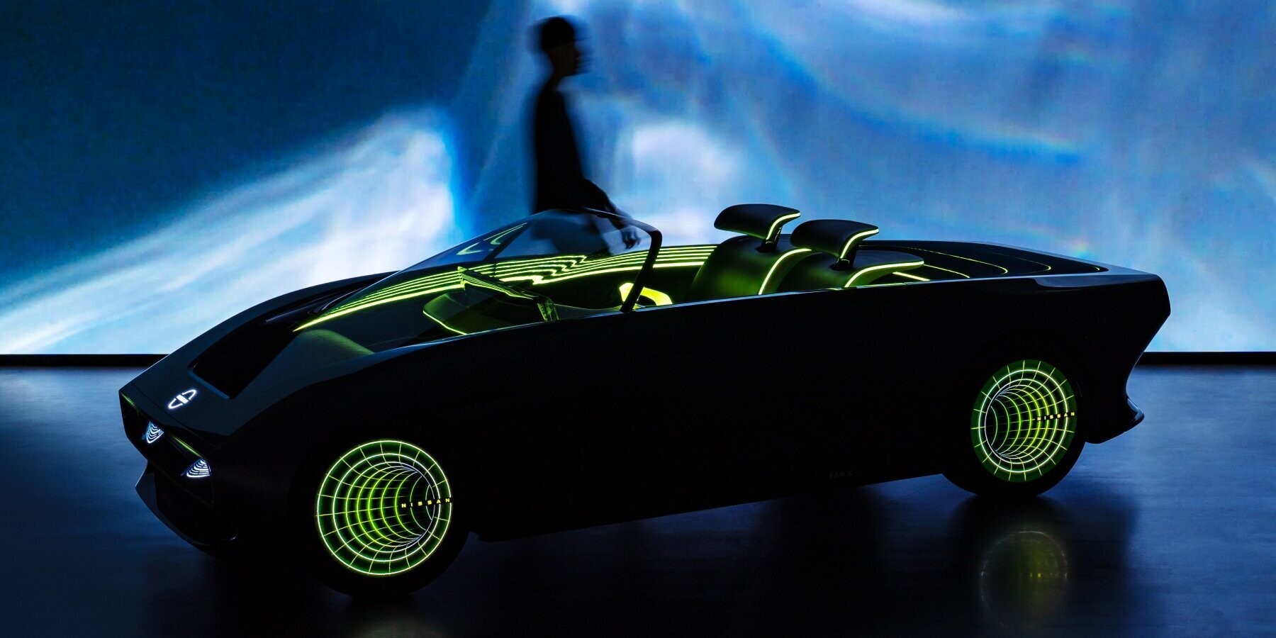 Når natten falder på, cabriolet Alt hvad du har virkelig komme til live. Køretøjet lyser i mørke takket være grøn laserlysteknologi, der danner sekventielle gittermønstre fra interiøret til hjulene. Dette designvalg går tilbage til synthbølgernes æra og opfylder den retro-futuristiske drøm om natcruising.