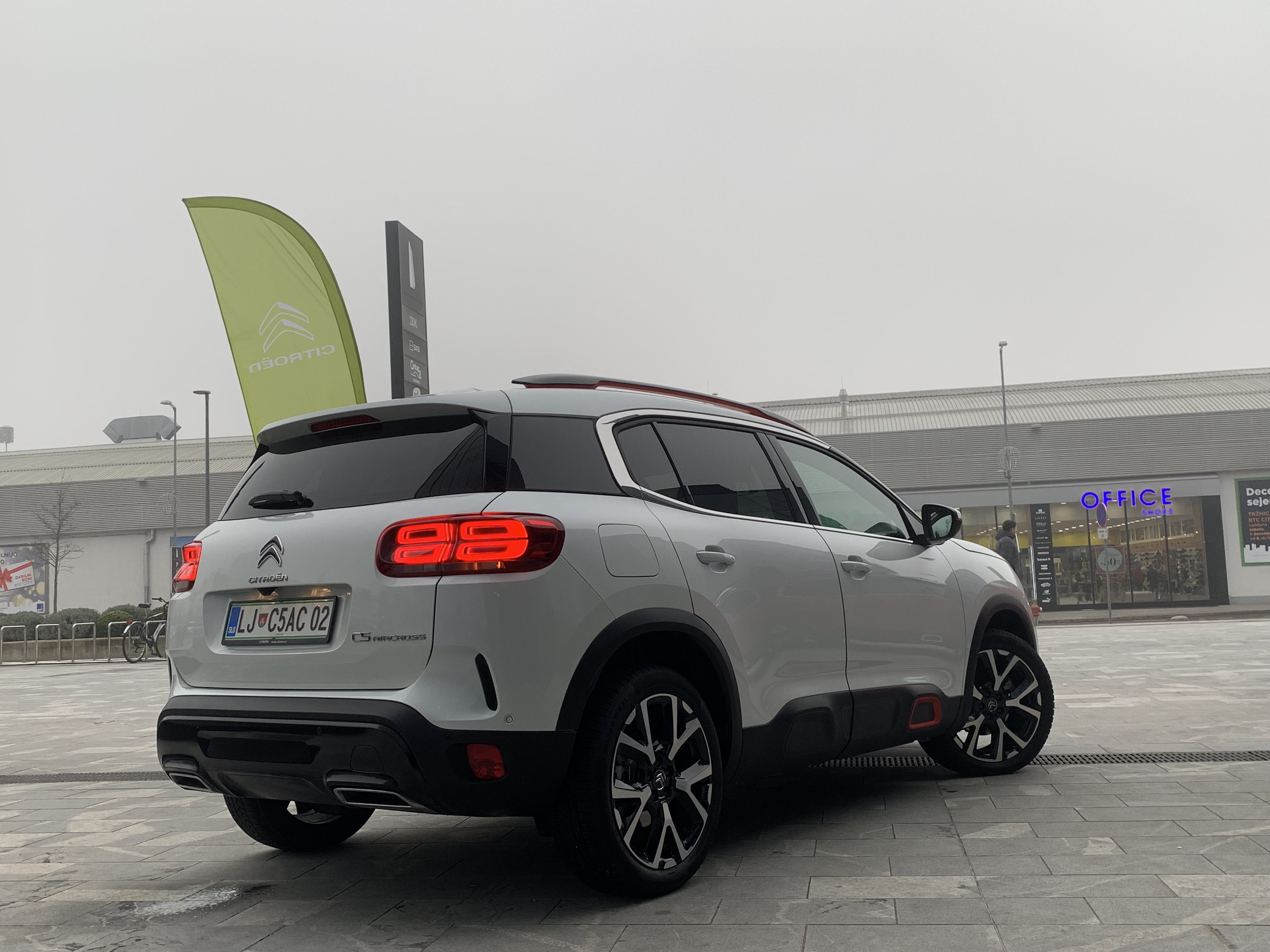Zunanje linije novega Citroën SUV C5 Aircross so nezamenljivo športno-terenske. Prednji del je prepoznavno Citroënov, z med seboj ločenimi lučmi, s strani pa črni stebrički ustvarjajo občutek, da streha lebdi. Zadek popestrijo LED'er luči v 3D-tehniki. Na voljo je sedem barv karoserije, ki jih lahko kombiniramo s tremi barvnimi paketi, in vse skupaj kombiniramo še s sort taget. Tako je več kot dovolj možnosti, da bo vsak našel takšnega C5, ki mu najbolj ustreza.