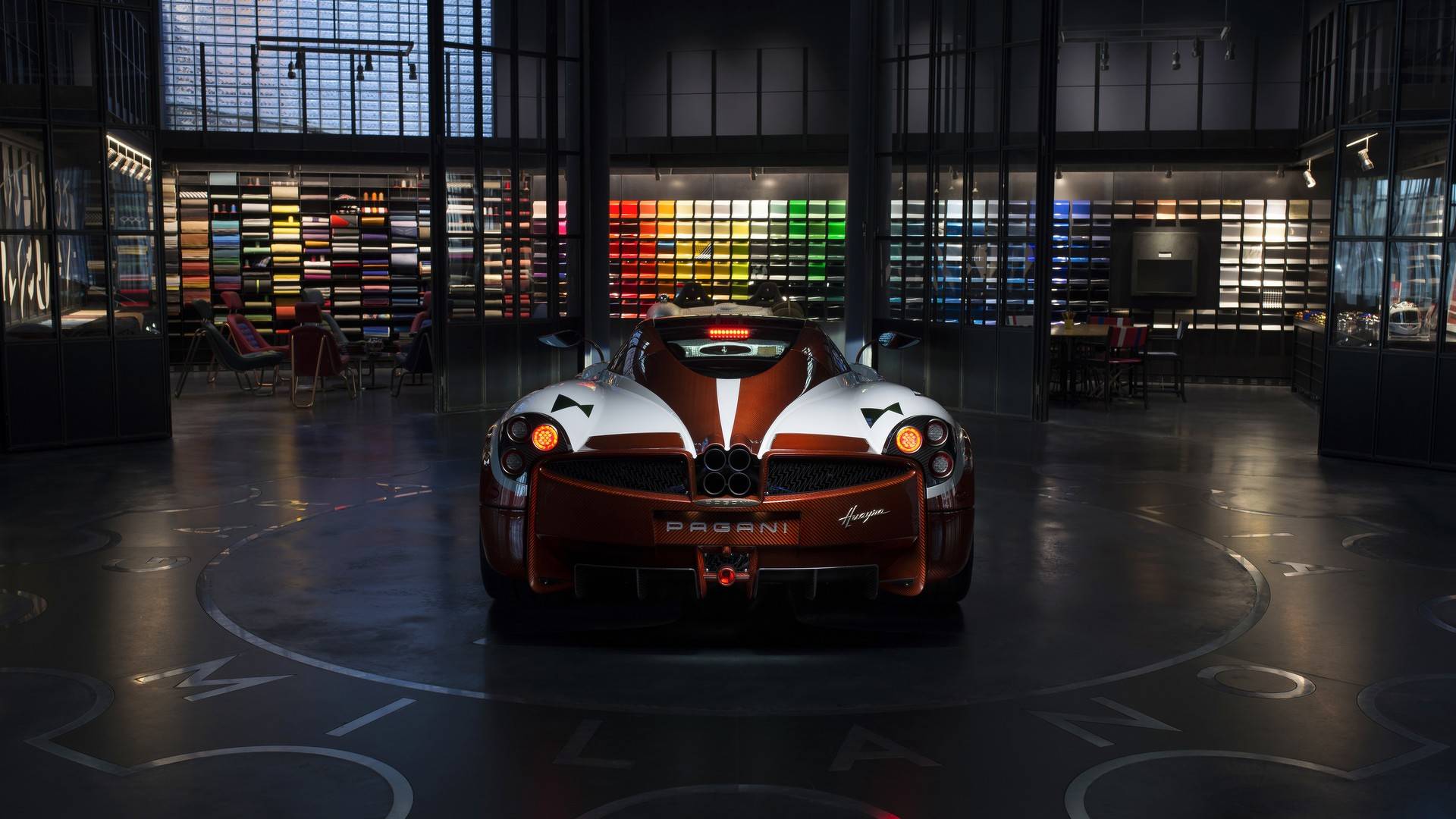 Ko pogledamo Huayro, lahko vidimo, da nosi na novo razvito karbonsko karoserijo. Ima aluminijaste vstavke, ki poskrbijo, da pride barva še toliko bolj do izraza. Nekateri deli so le prelakirani, da lahko vidimo prepletena vlakna, iz katerih je vse skupaj narejeno. Zadaj na bokih imamo simbolno narisano italijansko zastavo, kar lahko najdemo tudi na konceptni Turbini.