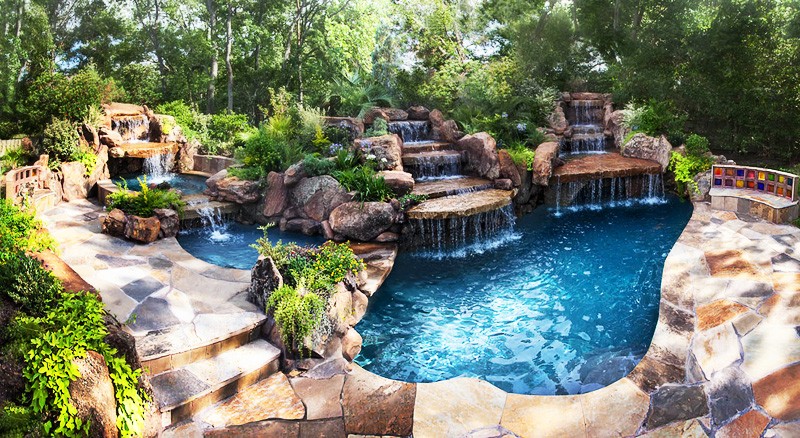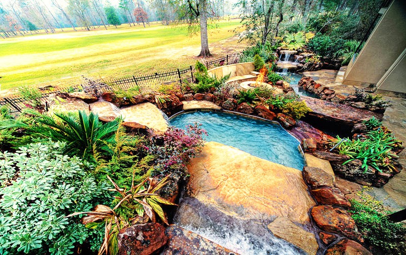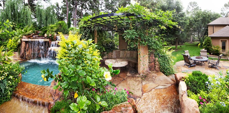 Vi præsenterer for dig smukt anlagte haver udsmykket med kunstfærdigt udformede pools, damme, vandfald, søjler, pejse, huler og udendørs køkkener.