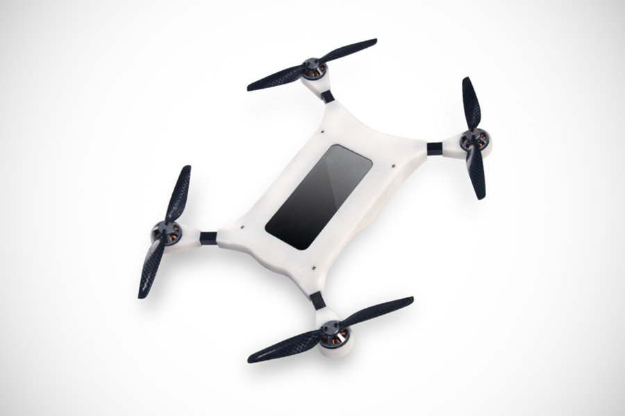 En drone PhoneDrone Ethos forvandler din smartphone til en drone. Dronen har brug for et gyroskop, GPS-teknologi og et kamera for at være fuldt funktionsdygtig. Se på det, din smartphone har alt dette! PhoneDrone giver således "kun" til mekanikken (quadcopter), mens Android (Samsung Galaxy S2 og nyere) og iPhone (4S og senere) gør resten. Det betyder automatisk en lavere pris for dronen, fordi det meste af det sofistikerede udstyr leveres af telefonen.