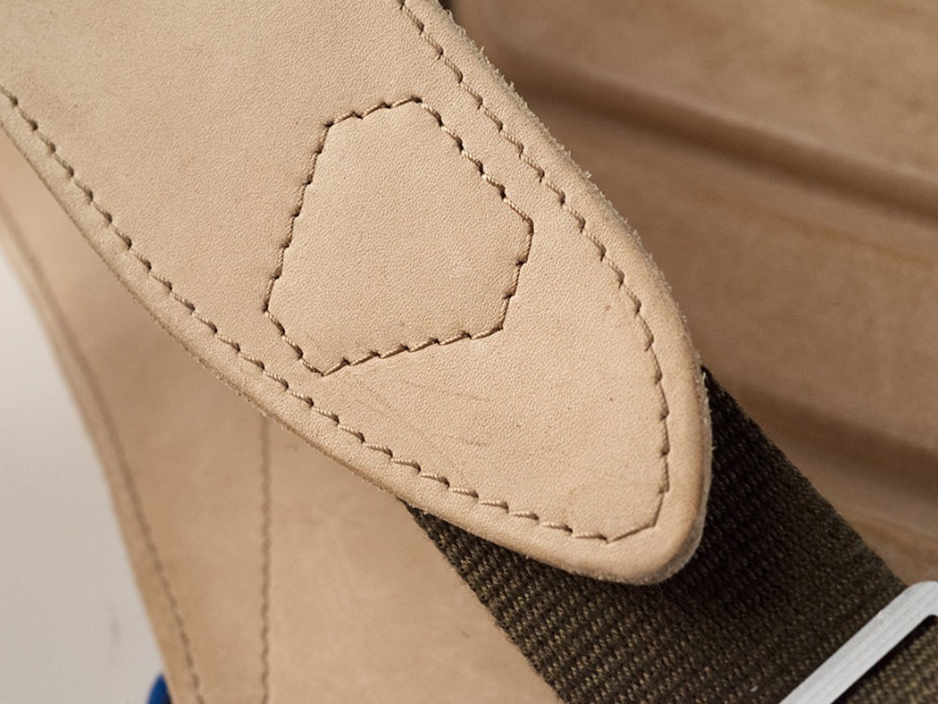 Den geometriske trekantede honeycomb-struktur er lavet af naturligt okselæder og er baseret på studiet af udvidelige strukturer. Den indvendige skal er lavet af stof med lycra, som tilføjer elasticitet og tilpasningsevne til den ydre skal også omkring brugerens krop. Resten af "tasken" på rygsækken er beklædt med læder.