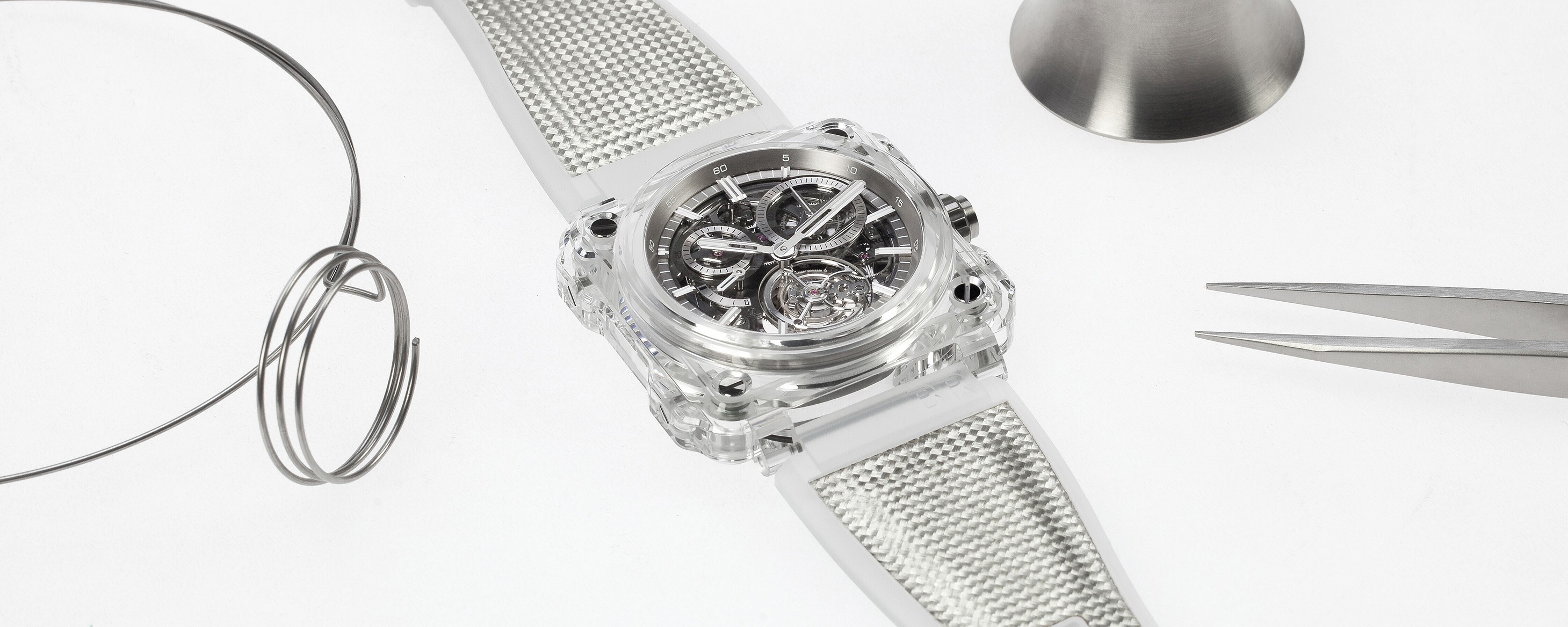 Bell & Ross præsenterede et prestigefyldt armbåndsur lavet af safir, et materiale hårdere end kun diamant. Normalt er kun beskyttelsesglasset over urskiven lavet af safir, men Bell & Ross lavede BR-X1 Tourbillon Sapphire armbåndsuret udelukkende af safir. Hublot introducerede også et lignende ur for noget tid siden (Big Bang Unico Sapphire).