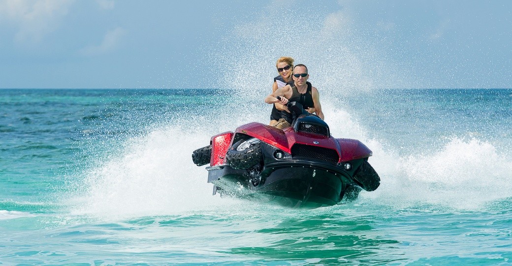 Fra Ian Flemings film er vi vant til køretøjer, der flyver gennem luften, sejler på vandet, og quad'en ser ud til, at den er lavet netop til denne filmserie. Den eneste forskel er, at dette amfibiekøretøj fungerer og også er til salg. Dens særlige egenskab er, at den ved et tryk på en knap forvandler sig fra en firehjulet motor til en jetski-scooter på få sekunder, og med den kan brugeren overkomme alle mulige terræner.