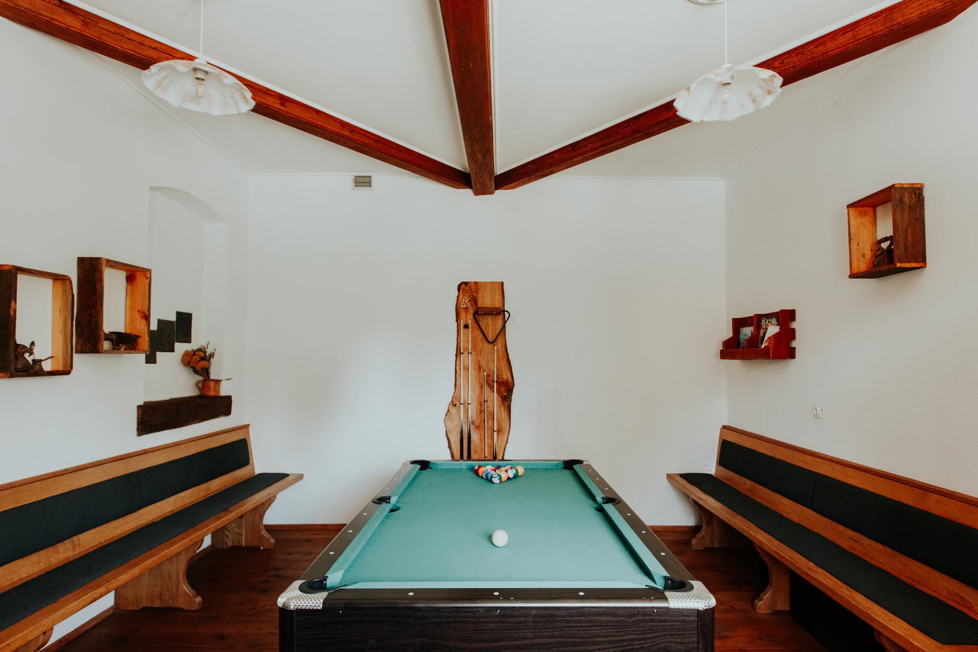 Lejligheder er beliggende i et renoveret bondehus, og du kan vælge mellem Francos (7 personer) eller Stanets hule (5 personer). Alle lejligheder er udstyret med gratis trådløs internetadgang, fladskærms-tv med kabelkanaler, aircondition og varme. Hver lejlighed har også et veludstyret køkken og et separat soveværelse. Der er gratis parkeringspladser foran huset, masser af græsarealer til bevægelse, rekreation, picnic og andre udendørs aktiviteter. På varmere dage kan du forkæle dig selv med et spring ind udendørs pool eller brusebad under en udendørs bruser. I tilfælde af dårligt vejr er der et fællesrum til socialt samvær inde i bygningen med bordfodbold, dart, billard og bar.