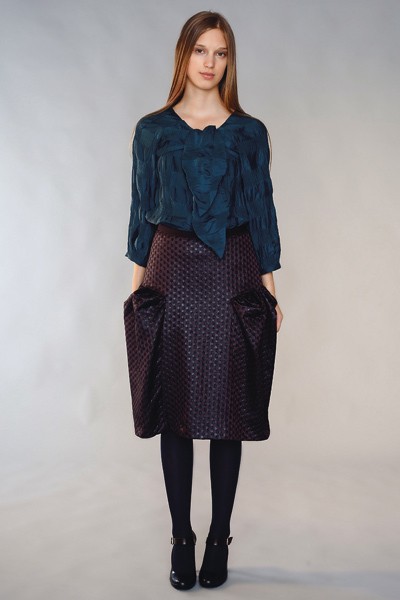 Nova kolekcija odlične slovenske oblikovalke Almire Sadar nadaljuje raziskovanje tekstilnih materialov in ženske silhuete iz prejšnjih kolekcij. Naravni materiali iz 100 % volne, svile in mešanice s tehno materiali dajejo oblačilom športen videz in zagotavljajo toplo zimo. Kroji se oprijemajo ženskega telesa in se ozirajo v modo petdesetih let, kar se izraža v širokih gubah kril in pentljah, ki se pojavljajo na različnih delih oblačil. Na robovih izbranih oblačil se pojavlja tudi vzorec trav, gubanje materiala v detajlu pošitih naborkov pa predstavlja novo teksturo. Kolekcija oblačil, pletenin iz kašmirja in modnih dodatkov je resna, toda še vedno razgibana, kot je to značilno za Almiro Sadar.