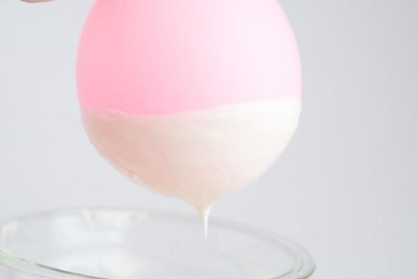 Balone operemo in osušimo. Nato jih napihnemo do želene velikosti in s peki papirjem zaščitimo delovno površino. Mrvice stresemo v skledo. Nato pripravimo glazuro. V posodi, na katero se prilega manjša skledica, zavremo za 5 prstov vode za vodno kopel. Posodico položimo nad soparo, potem pa vanjo nadrobimo čokolado. Dodamo še kokosovo maščobo, oboje pa med previdnim mešanjem počasi stopimo. Odstavimo in v glazuro pomočimo prvi balon. Nato ga pomočimo še v skledo z mrvicami. Pazimo, da balona ne vlečemo ampak ga pritiskamo na mrvice. Prekrit balon odložimo na peki papir in nadaljujemo z naslednjim balonom. Ko se glazura strdi, balone popokamo in nežno odstranimo. Barvite posodice napolnimo s sladoledom in uživamo.