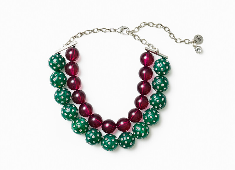 Det er også værd at nævne tilbehøret, som er stjernen i showet. Smykker er i centrum, da Iris er kendt for sin hang til at lægge dristige smykker i lag og en 'mere er mere' tilgang. Tilbuddet omfatter store halskæder, øreringe og et armbånd. Andre tilbehør omfatter sko, bælter og mønstrede strømpebukser.