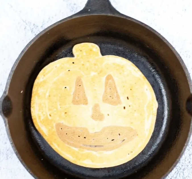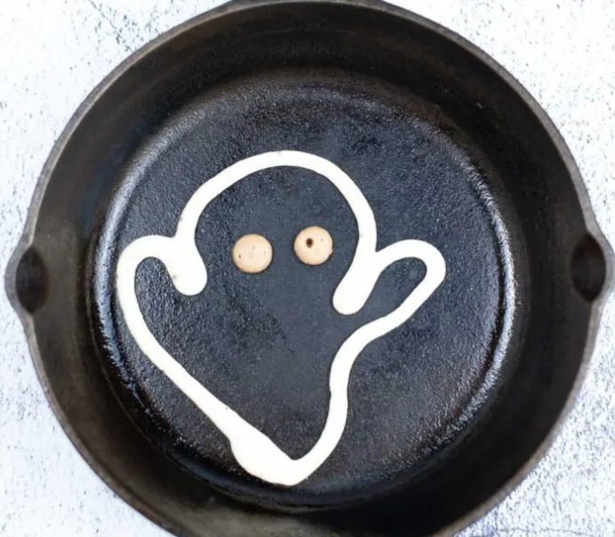 Eller du kan bage pandekager i form af et spøgelse, og derefter pynte dem med sød fløde, forskellige farvede krymmel og chokolade.