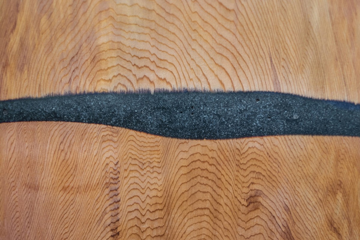 At skabe unikt udseende Sikringsskabe, er designere på tegnestuen Studio Virkelig Virkelig smukt cedertræ slebet på skrå og sammenføjet i lag med hjælp af kontrasterende sort marmor. Dette fungerer som en parasit, der umærkeligt kigger ind i trædelene, men samtidig holder skabet sammen og i det væsentlige holder det "i live".