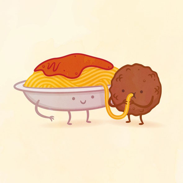 Designer og illustrator Philip Tseng tegnede madvarer med menneskelige egenskaber og viste dem parvis som en slags elskere, som et drømmepar født for hinanden eller som bedste venner. Det er de kombinationer, som vores smagsløg bedst kan lide. Jordbær og chokolade, vindruer og ost... Der er en del madvarer, der passer perfekt sammen, og Tseng viser det på en indtagende måde.