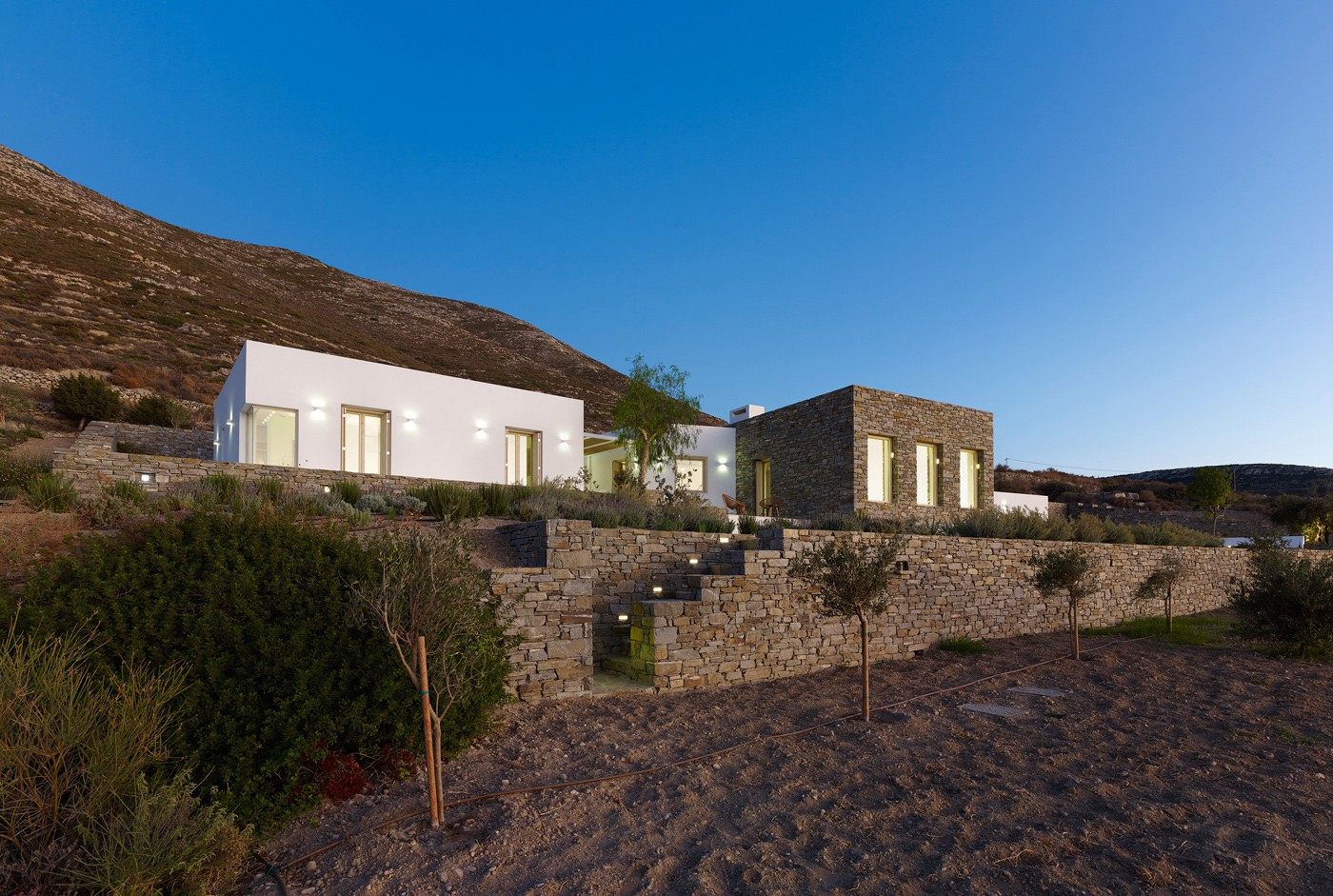 AS Hus, stående på en græsk ø Paros med udsigt over Det Ægæiske Hav, bringer klassisk kykladisk arkitektur ind i det 21. århundrede. Den består af en samling af mindre bygninger, der er placeret lineært på tværs af landet. Den har et "vasket" hvidt ydre en hyldest til lokalbefolkningen, og tilføjelsen af sten giver den en arkaisk karakter. Interiøret følger dette vandrette layout, og det er i alle rum maksimal udnyttelse af udsigten over kysten. Der er naturligvis også en række overdækkede verandaer og åbne terrasser, bl.a terrasse ved poolen, som giver et udendørs ophold omgivet af en smuk udsigt over havet.
