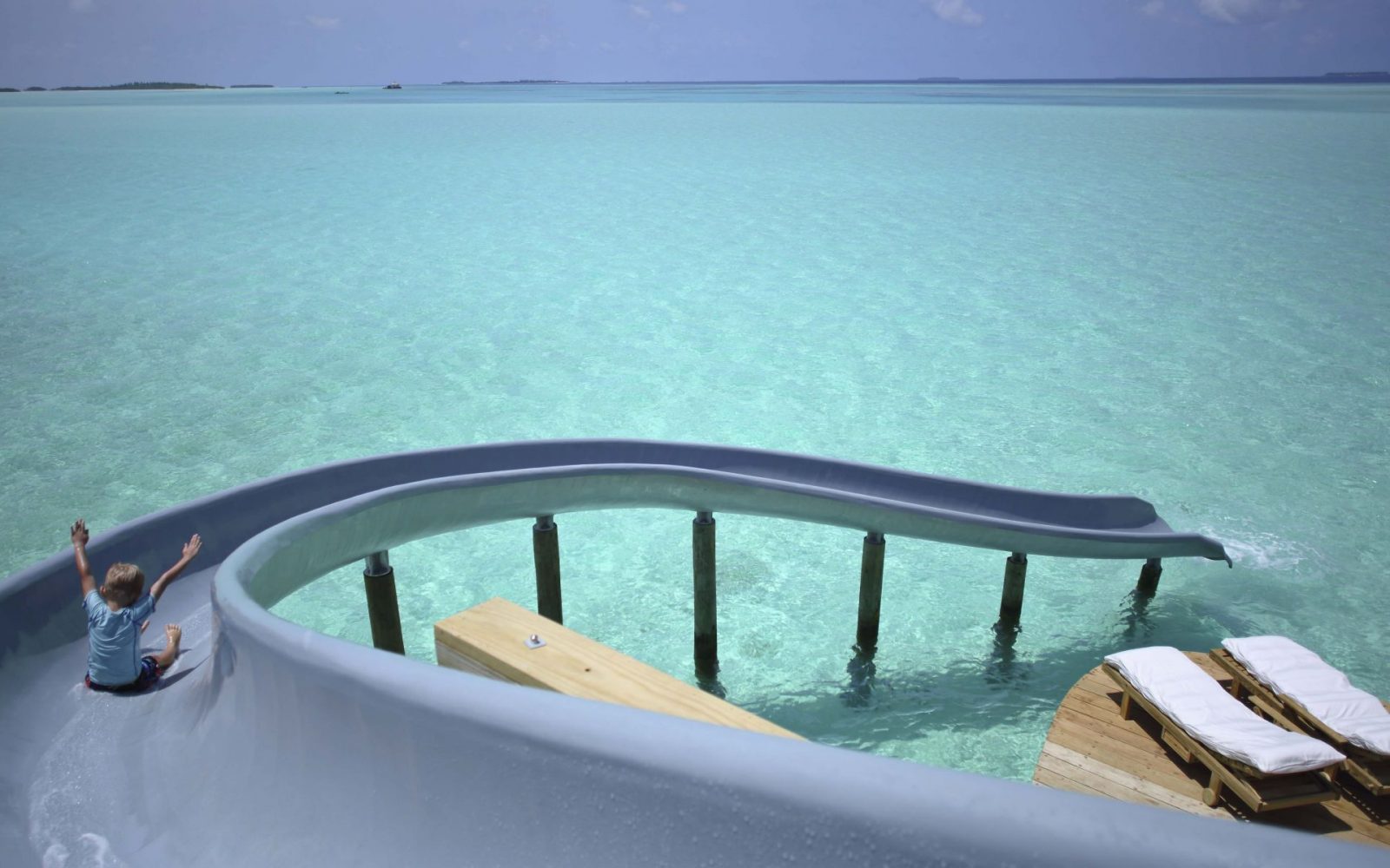 Soneva Jani ima 24 bungalovov nad vodo, od enosobnih vil do vil s štirimi spalnicami. Vsaka ima zasebni bazen, mrežo nad vodo za ležanje, kopalnico na prostem in osebnega butlerja. Več bungalovov ima tudi nekaj, kar lahko vidimo prvič: tobogan.