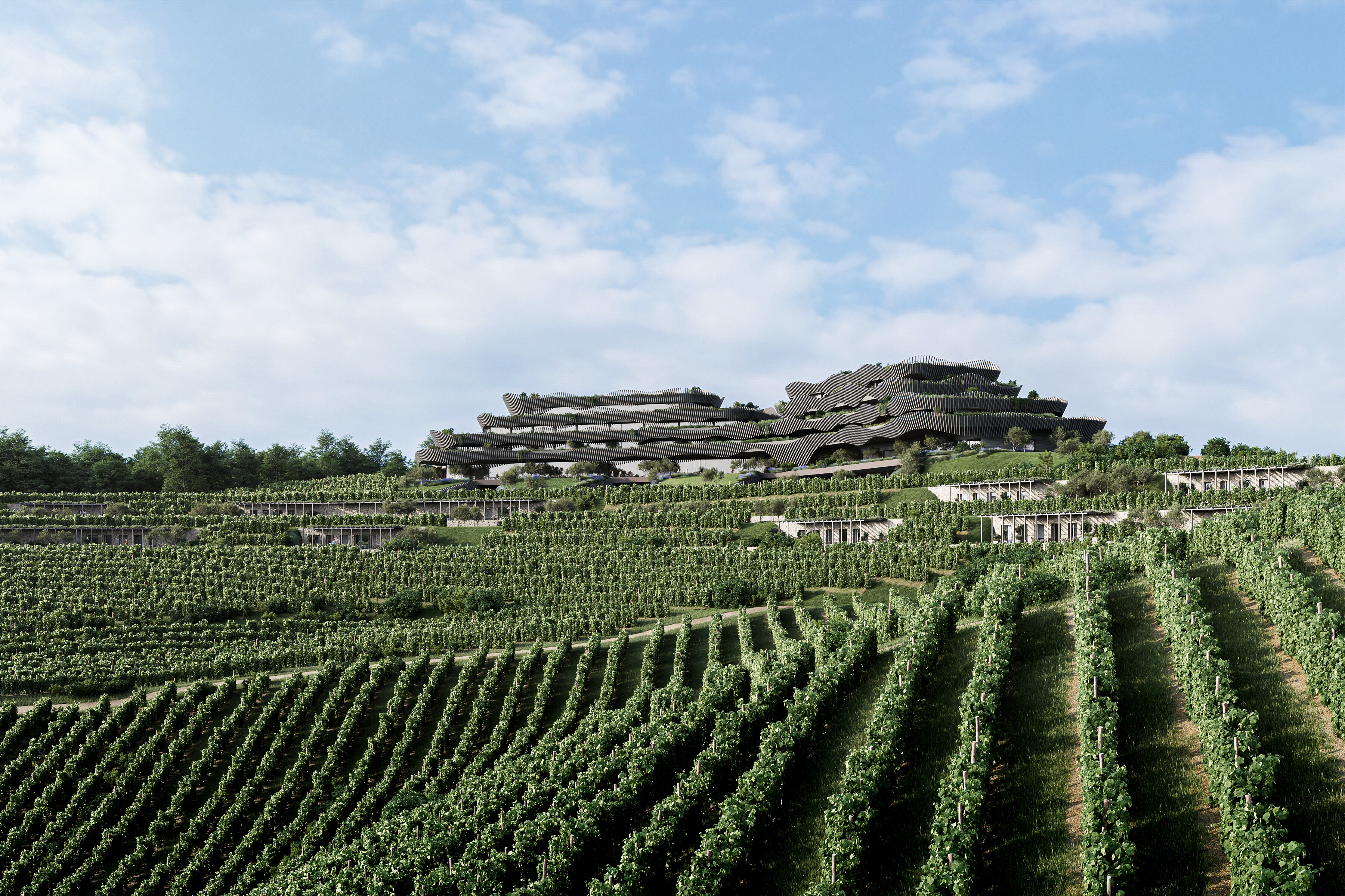 Den arkitektoniske udformning af projektet er underskrevet af den anerkendte arkitektstudie SoNo arhitekti, og de blev styret af konfigurationen af det eksisterende terræn. Den valgte placering er omgivet af terrasserede vinmarker, hvilket også afspejler sig på facaden på den planlagte bygning.