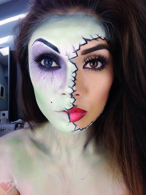 Superhude mejkap ideje za noč čarovnic (Halloween): Dvojni obraz
