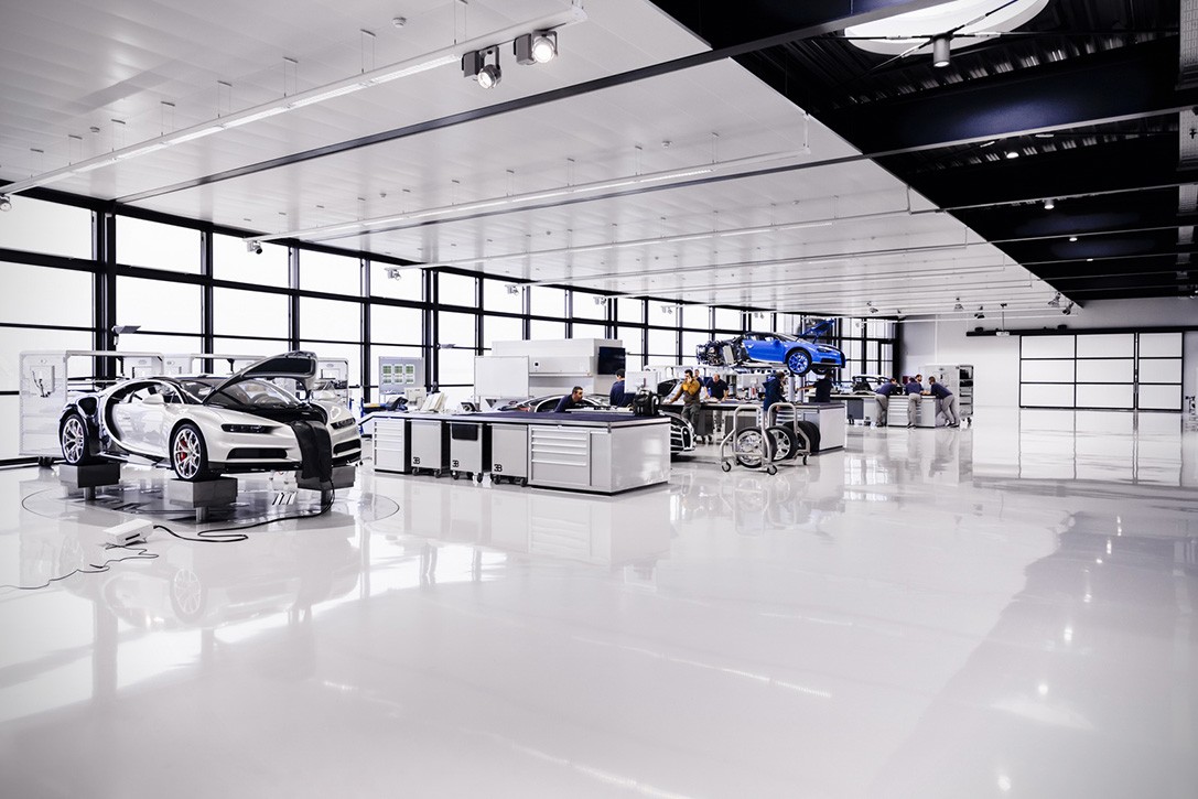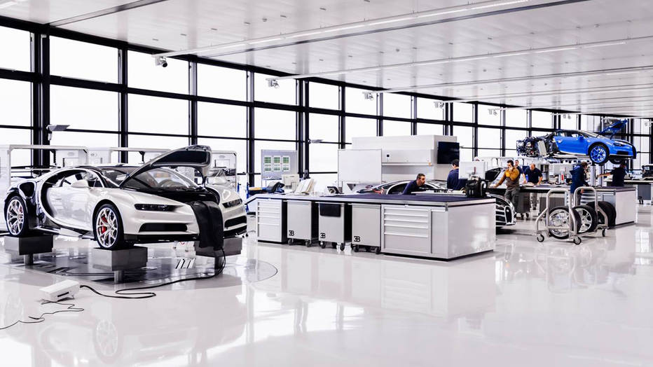 Kupec si lahko pri naročilu pošteno izmišljuje. Izbira lahko med 23 barvami karoserije, med oktetom dodatkov iz ogljikovih vlaken, med kar 30 načini šivanja, med 18 različnimi preprogami, med 31 barvami oblazinjenja, med 11 varnostnimi pasovi …, kar pomeni, da noben Chiron ne bo enak drugemu. Tla tovarne prekrivajo odporna epoksidna tla, v njej pa je, kot rečeno, bolj čisto kot v operacijski sobi.