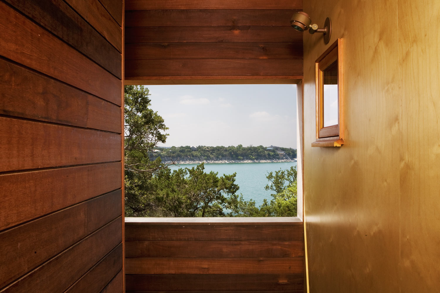 Ved bredden af Lake Travis i Austin (Texas) står det idylliske Tower House, designet af Andersson-Wise Architects. Huset skiller sig stærkt ud fra sine jævnaldrende, da det er højt og ikke muret med sten, men beklædt med træ. På grund af dette smelter den bare ind i omgivelserne. Den er bygget med det formål at tilføje et opholdsrum til en af de nævnte hytter. Og en tre-etagers bygning er vokset frem, hvis træ-"facade" komplementerer de omkringliggende sten smukt og bare beder dig om at klatre til toppen og beundre udsigten over søen.